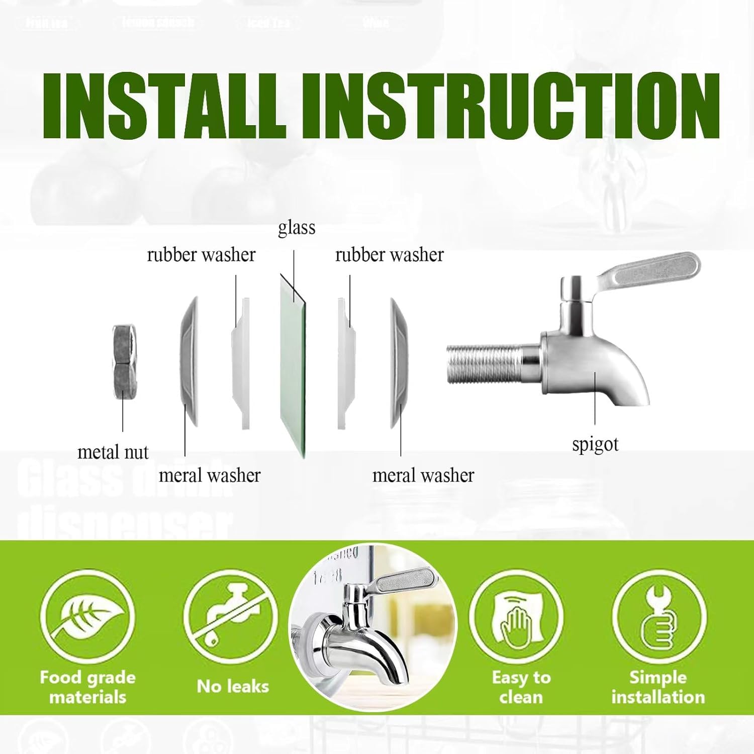 • 【Hochwertige Materialien】: Glas-Getränkespenderkrug ist aus hochwertigem Glas gefertigt , lebensmittelechtem Glas mit einem korrosionsbeständigen Edelstahlhahn, der sowohl sicher als auch auslaufsicher ist. Der Metallständer hebt den Spender nach oben und ermöglicht so ein bequemeres und arbeitssparendes Einschenken von Getränken in Gläser