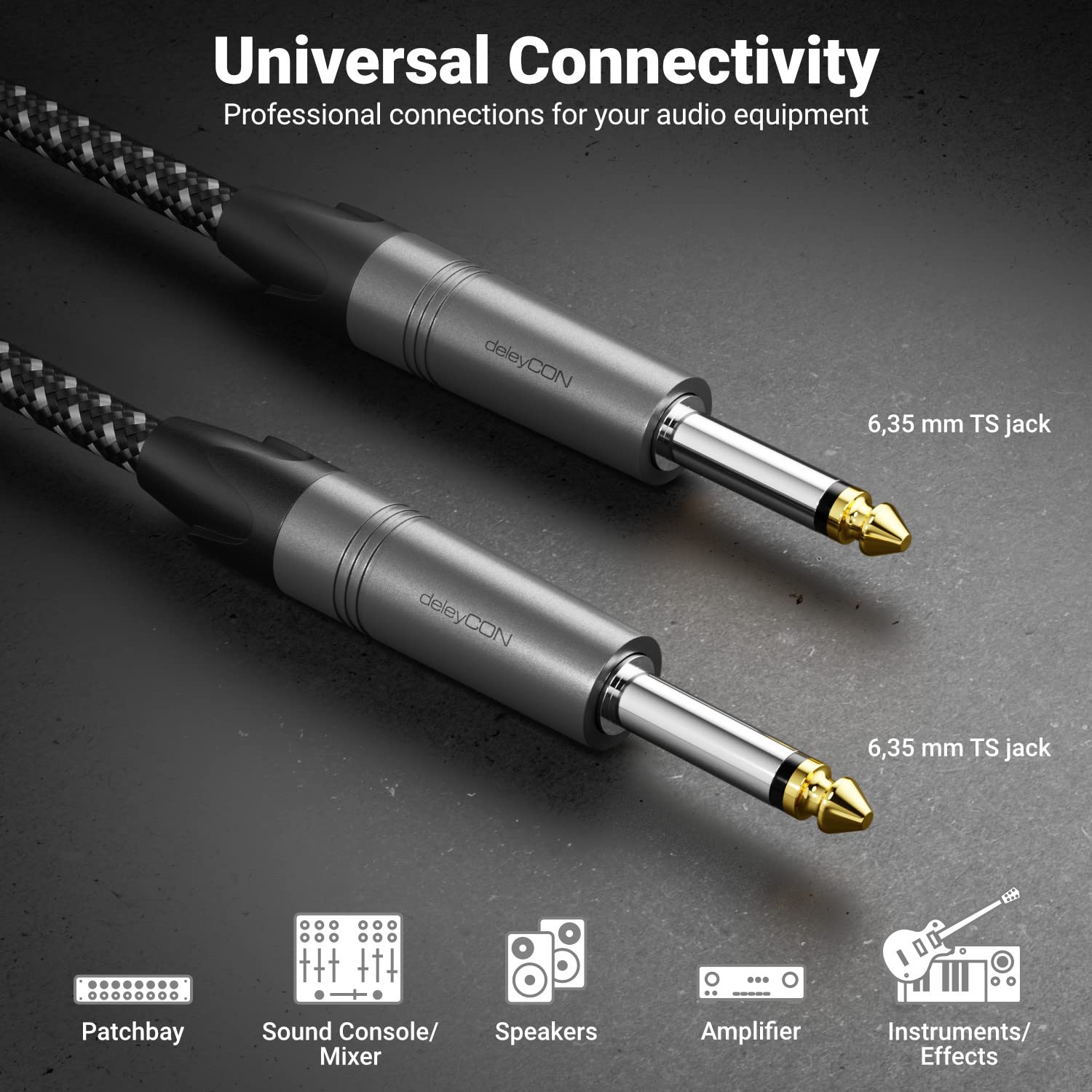 deleyCON Premium Instrumentenkabel - 6,35 mm Mono (TS) Stecker auf 6,35 mm (TS) Stecker mit Baumwollmantel in Studioqualität