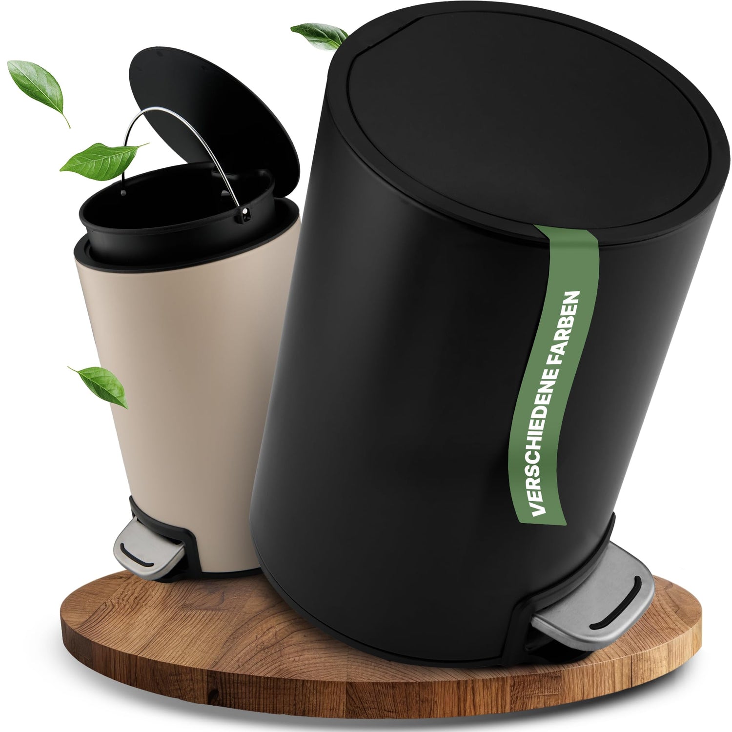 Delis Tree Mülleimer 5L, Tretmülleimer mit edlem Design & Softclose, Anti-Geruch Abfalleimer, für Bad Badezimmer Toilette Küche Büro, Müll Eimer Trash Haushalt Kosmetik Mülltonne Inneneimer (Schwarz)