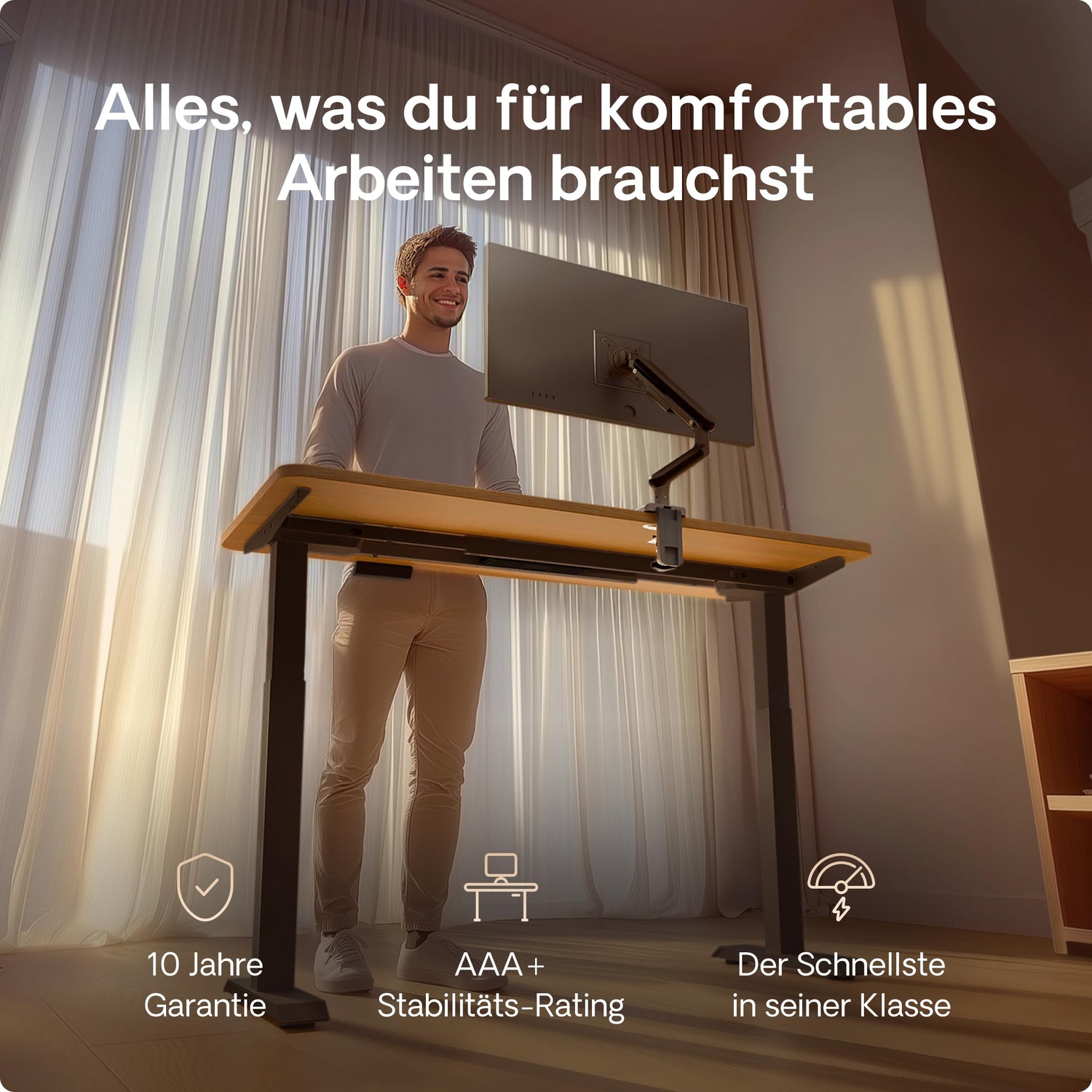 • Unser elektrischer Schreibtisch enthält eine schritt-für-schritt-anleitung und ein komplettes werkzeugset - alles, was sie für einen schnellen aufbau benötigen. Mit sorgfältig platzierten, vorgebohrten löchern und strapazierfähigen, fachmännisch zugeschnittenen Materialien kann unser Schreibtisch ganz schnell aufgebaut werden, und noch ehe sie sich versehen, werden Sie bequem an Ihrem höhenverstellbaren Homeoffice Arbeitsplatz stehen.