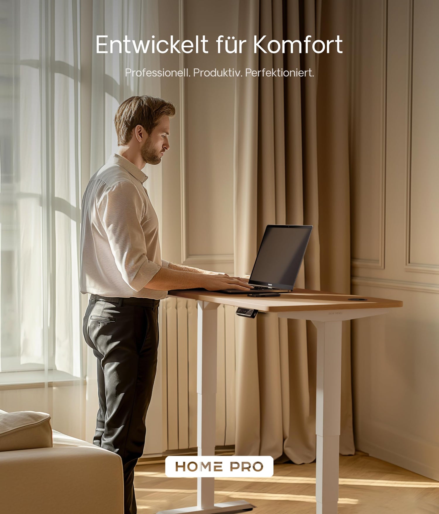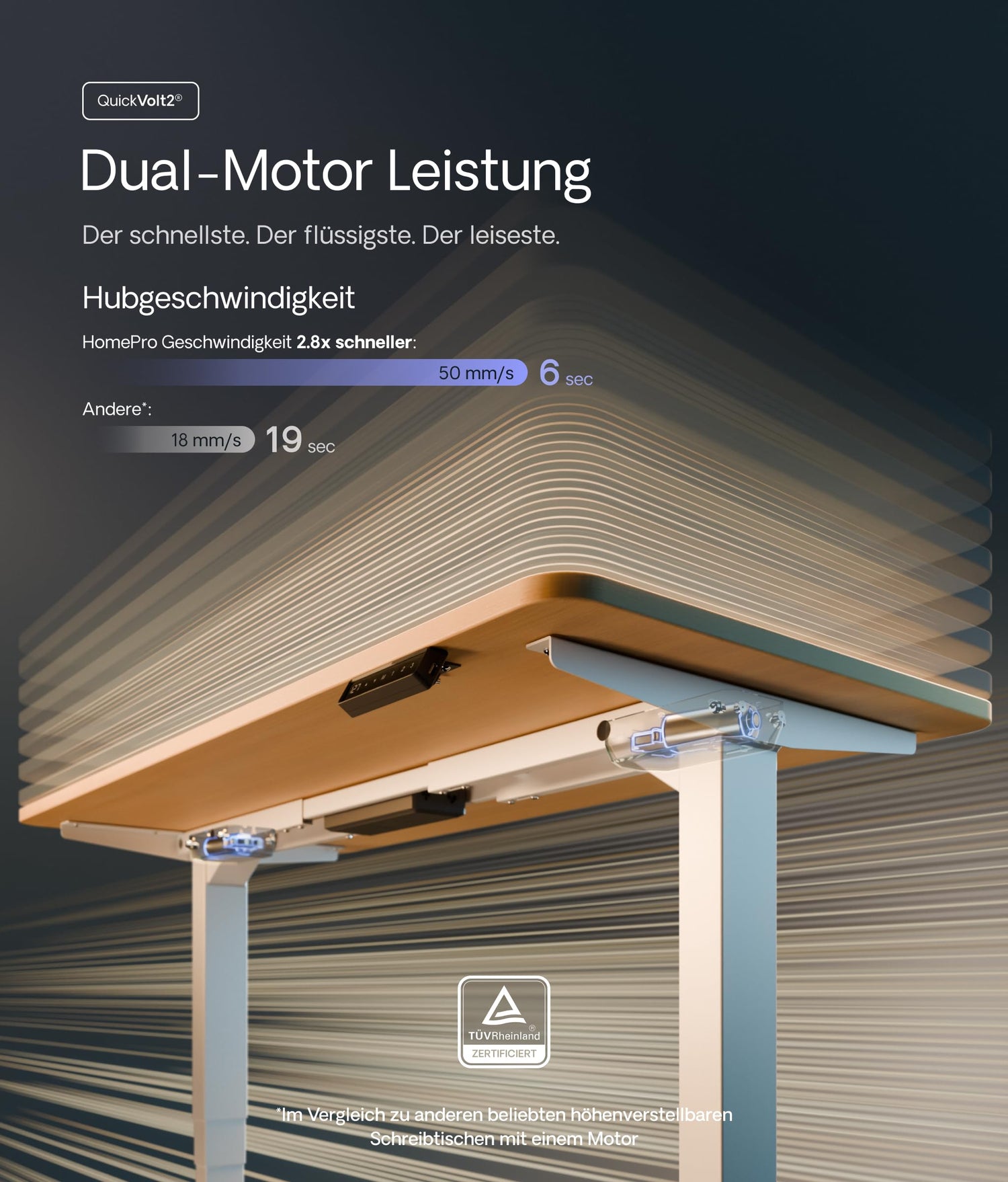 • Investieren Sie nicht in einen höhenverstellbaren Schreibtisch mit unzuverlässigem motor der nach kurzer Zeit nicht mehr funktioniert. Der flüsterleise hochleistungs-doppelmotor des Desktronic Home Pro Stehpults bringt den Bürotisch mit soft-start soft-stop-Aktivierung jedes Mal innerhalb von 12 sekunden präzise in Position. Der PC Tisch ist doppelt so schnell wie andere elektrisch höhenverstellbare Schreibtische. Dieses Stehpult ist auf reibungslose funktion & dauerhafte Leistung ausgelegt