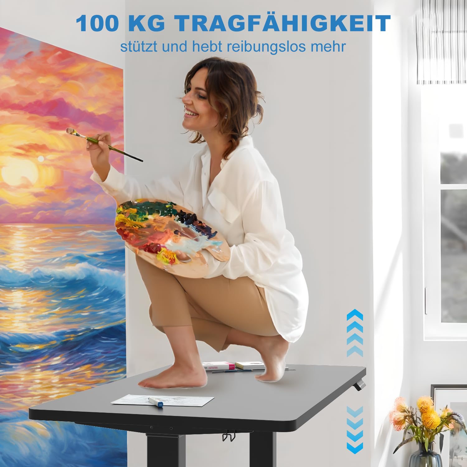 • TRAGFÄHIGKEIT 100KG - DEVOKO elektrischer Höhenverstellbarer Schreibtisch ist aus hochwertigem, verdicktem kaltgewalztem Stahl. Die 80*50mm Beine bieten starke Unterstützung und können bis zu 100kg dynamisch belastet werden, was die Stabilität des Schreibtisches gewährleistet. Er ist mit zwei Haken und einer Kabelaufbewahrungsbox versehen, die den Schreibtisch ordentlich halten. Außerdem hat er vier Universalräder, mit denen er jederzeit bequem und praktisch bewegt werden kann.
