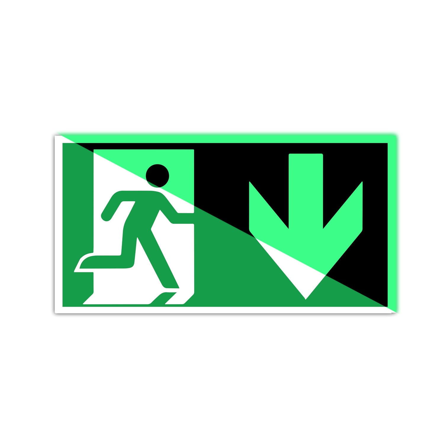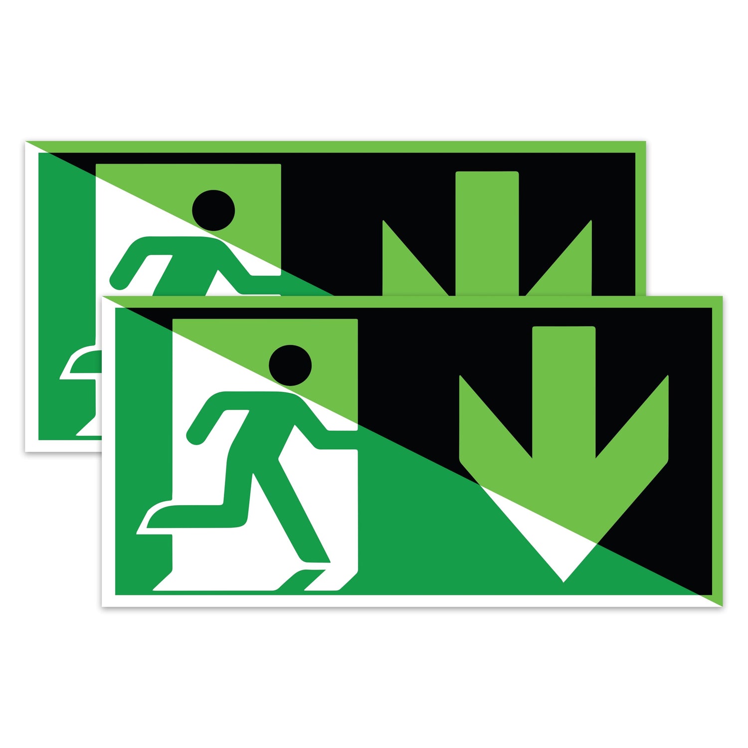 DinAliX 2 Stück Notausgangsschild nachleuchtend Pfeil nach Unten | 300x150mm VINYL Notausgangsschild Selbstklebend | Entsprechend ISO DIN 7010 / DIN 67510