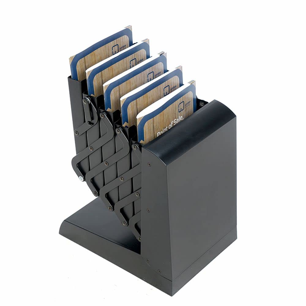 • MATERIAL: Prospektständer, faltbar aus Aluminium und schwarzem Stahlblech mit 5 Fächern für Prospekte und Kataloge.