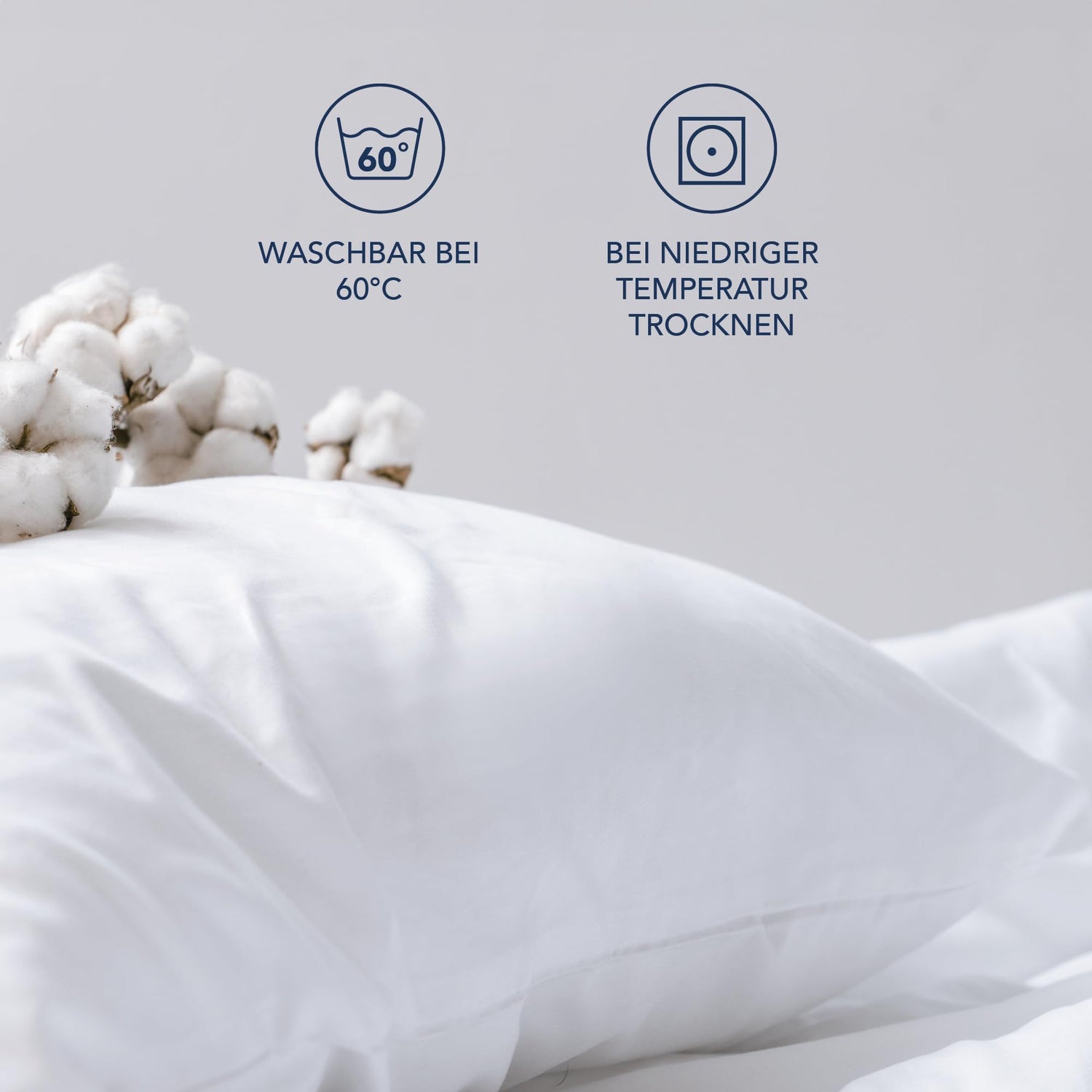 • DESIGN UND EINFACHE PFLEGE - Die natürliche Eleganz der Baumwolle in Kombination mit ihrer Schlichtheit ermöglicht, dass dieser Kopfkissenbezug 40 x 70 cm sich optisch perfekt in jedes Schlafzimmer integriert. Die zeitlosen Sets sind in 6 Farben erhältlich (Weiß, Schwarz, Grau, Anthrazit, Beige, Blau, Rot, Dunkelblau) und passen auch ins Deko Wohnzimmer - Kissenbezüge sind leicht zu waschen: Maschine bei 60°C