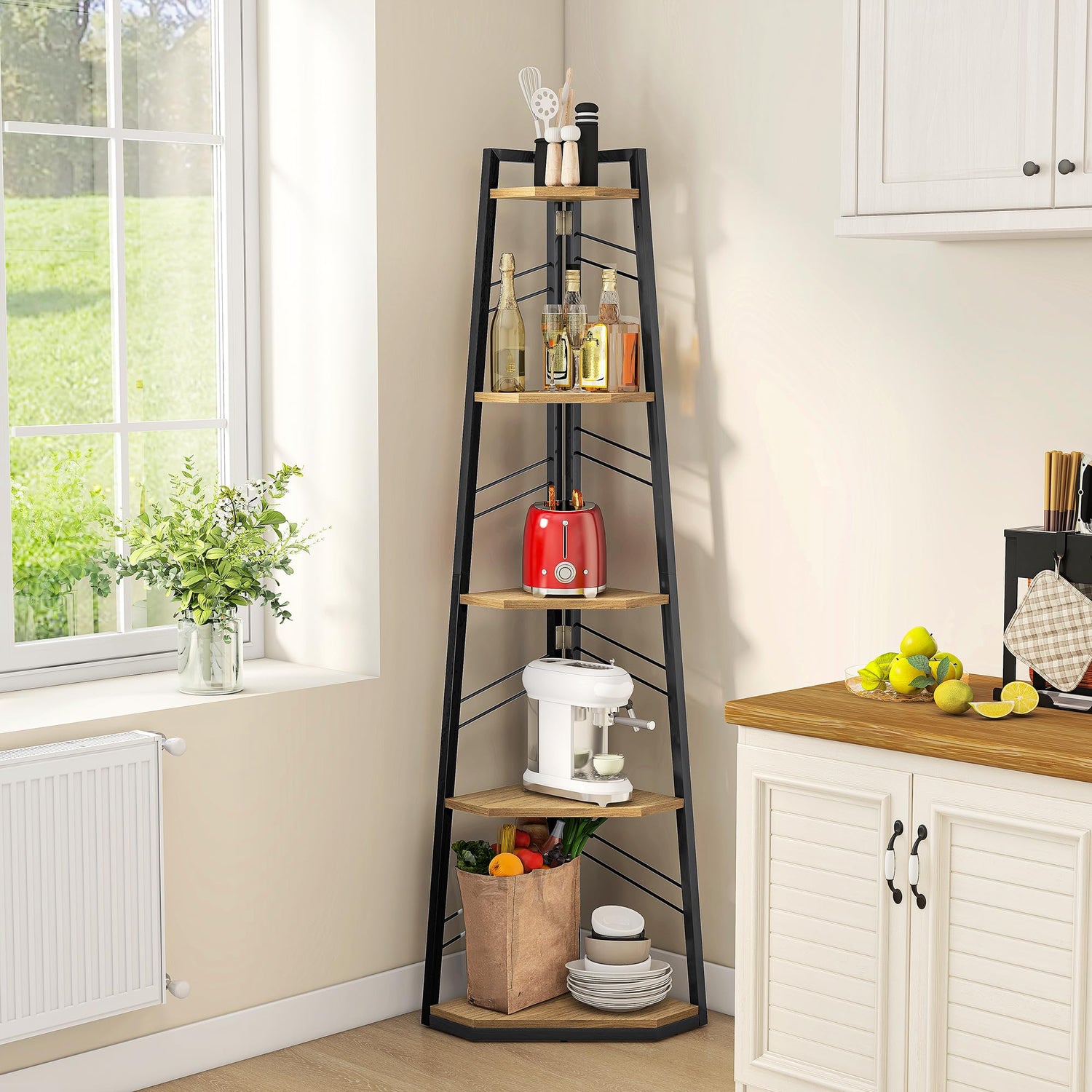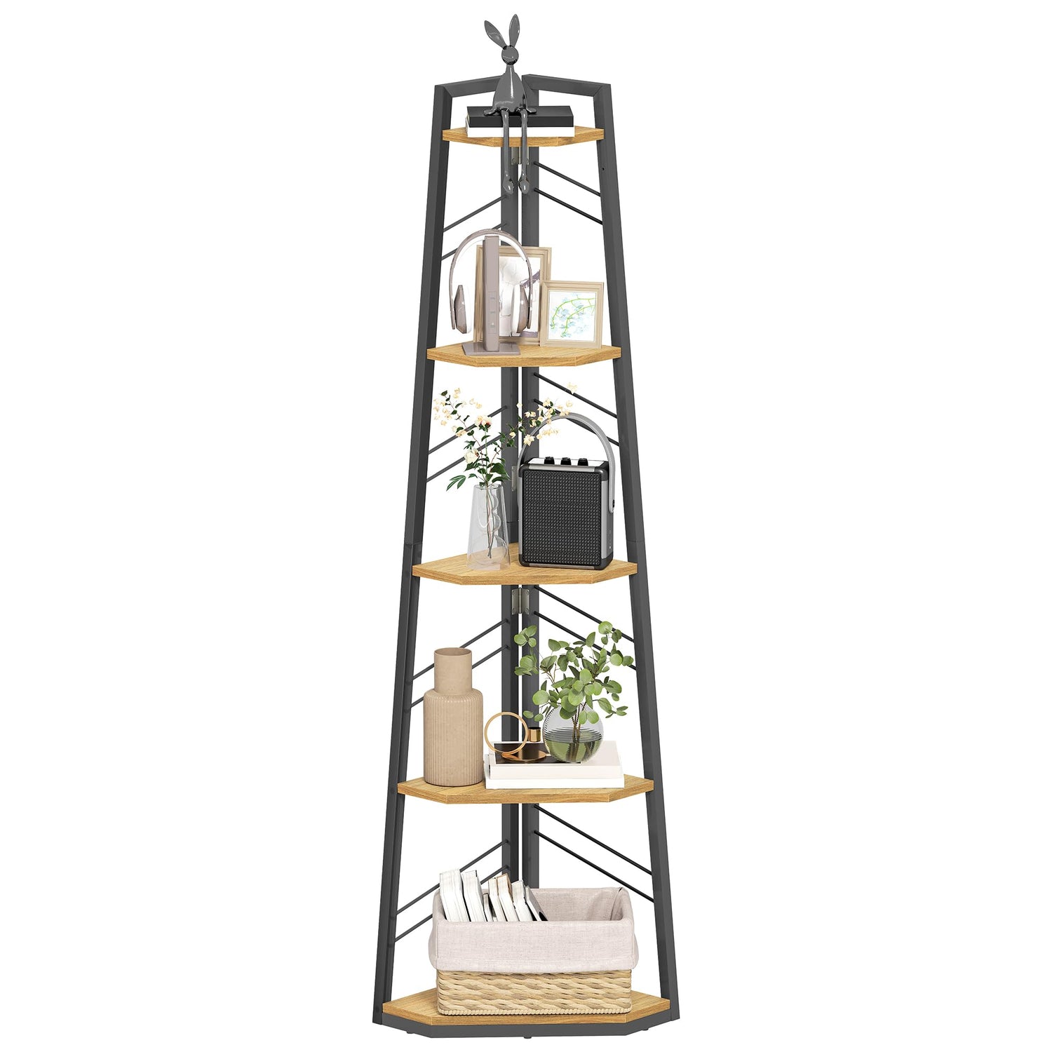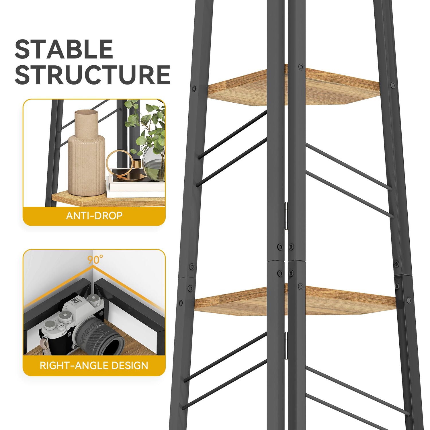 DWVO Eckregal 5 Ebenen Eichenfarbe, Industrielles Leiterregal mit Metallrahmen für Wohnzimmer, Küche und Schlafzimmer