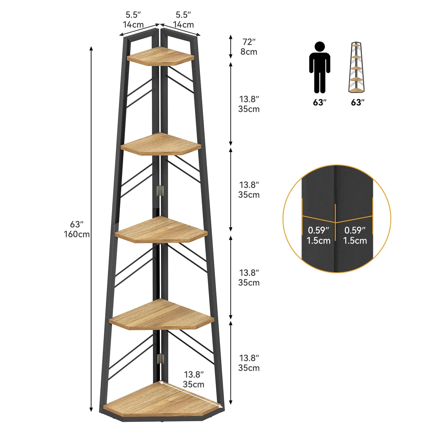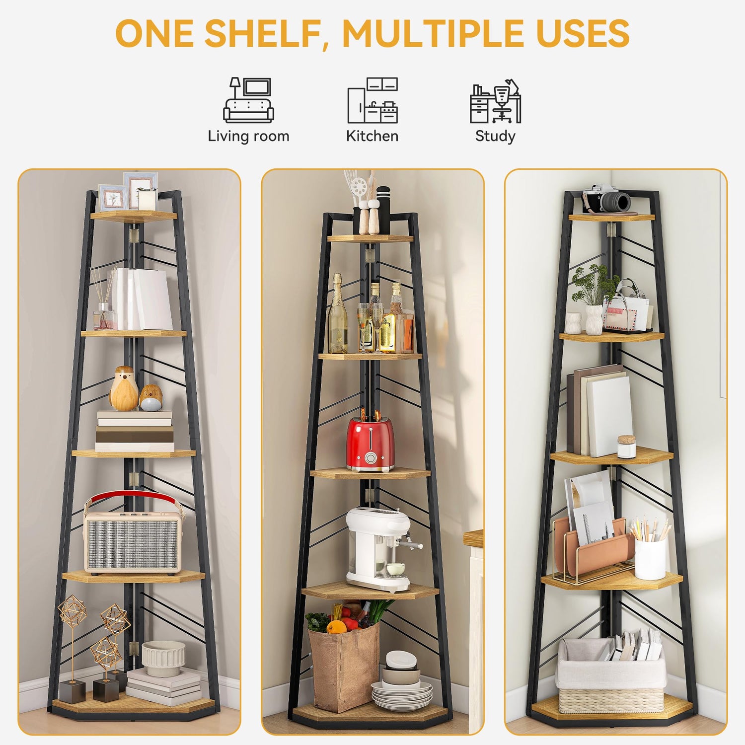 • Großzügiger Stauraum: Fünf Ebenen bieten reichlich Platz für Bücher, Dekorationen, Pflanzen oder Haushaltsgegenstände – alles griffbereit und ästhetisch arrangiert im industriellen Stil.