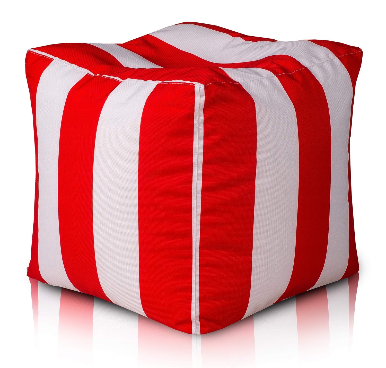 Ecopuf Cube Modern - Hocker Hocker aus 100% wasserdichtem Polyestergewebe. Fancy Stripe Design Fußstütze für den Außen- und Innenbereich Fantasy Stripe Rot DG23