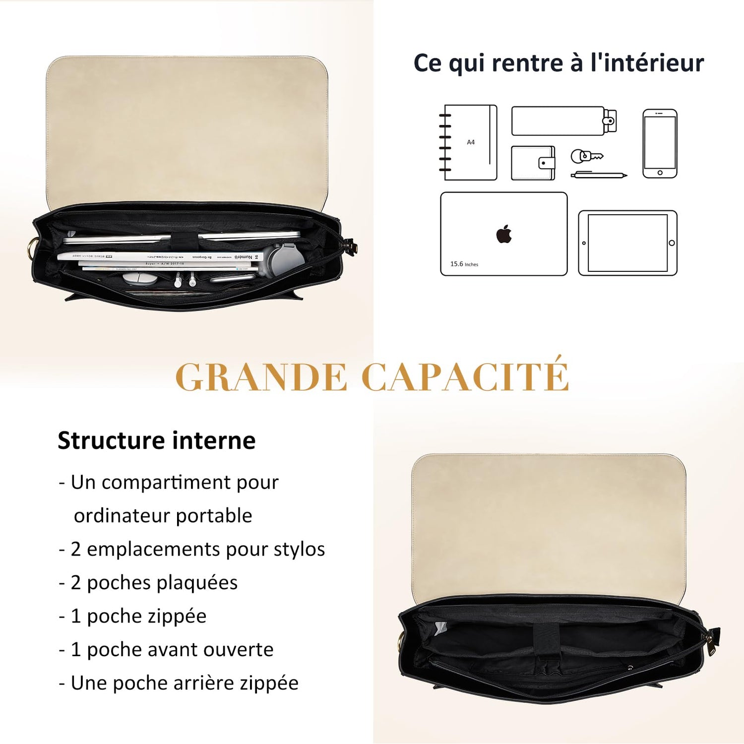 • Großes Fassungsvermögen: 1 Hauptfach für verschiedene Gegenstände, 1 gepolsterte Tasche für Ihren Computer, 2 kleine Taschen für Ihr Telefon und Ihre Maus, 2 Taschen für Stifte und 1 Reißverschlusstasche für Ihre Brieftasche