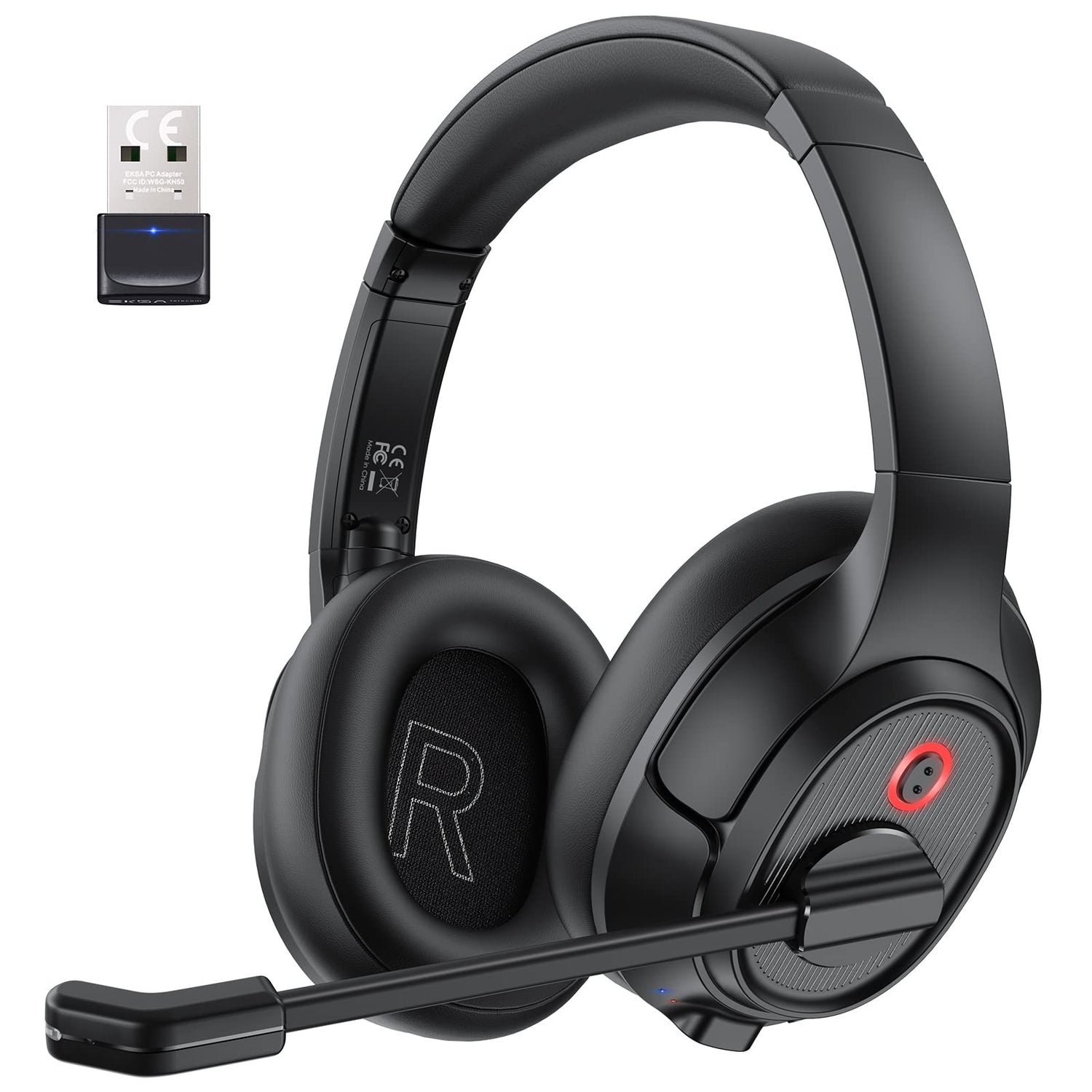 EKSA H6 Bluetooth Headset mit Mikrofon & USB Dongle [Bis zu 55 Stdn & 10 Meter Reichweite] Wireless PC Headset mit AI Noise Cancelling Mic, Over Ear Headset für Business/Büro/Home Office/Teams/Zoom