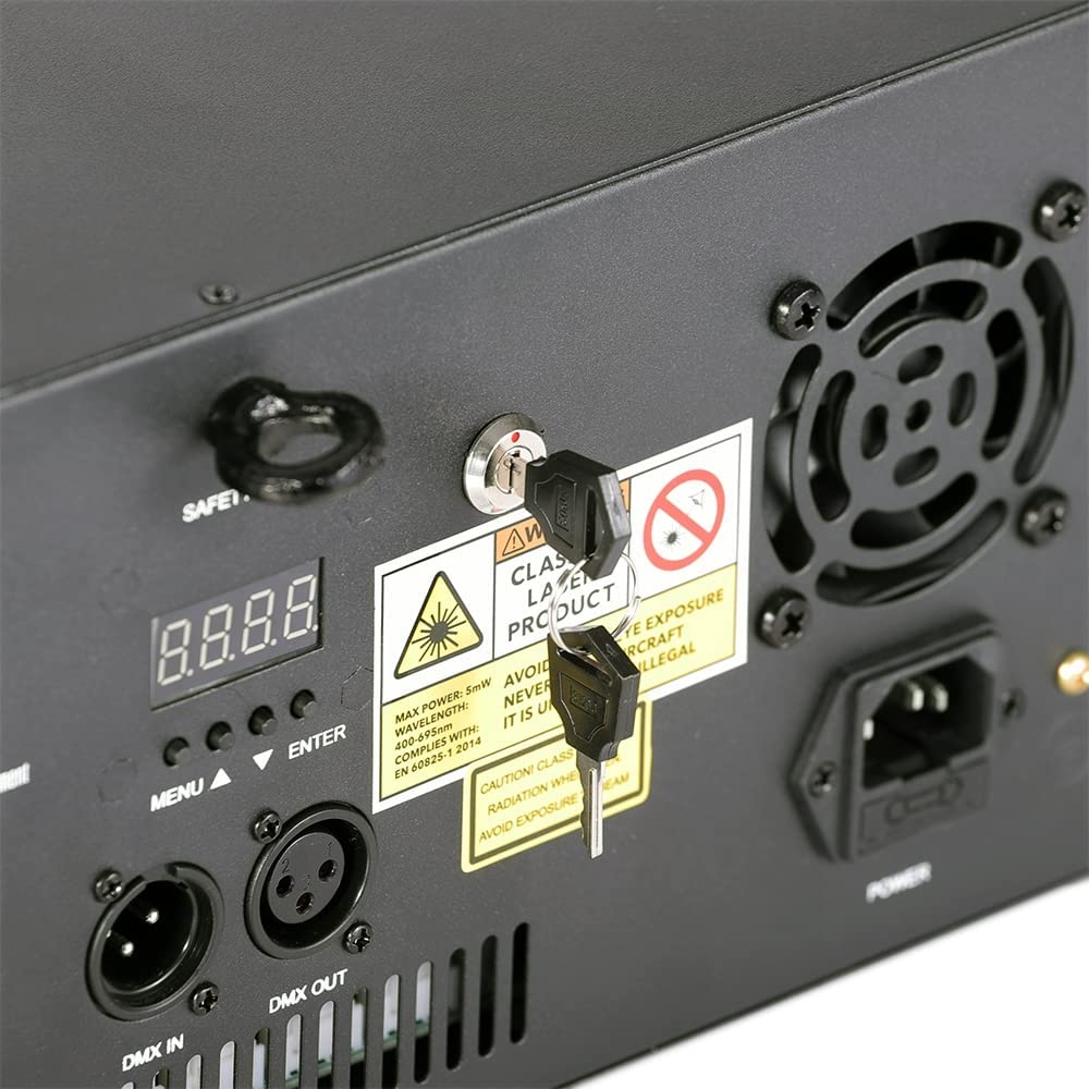 • Effekt 3: 130mW Rot-Grüner Gobo Stern-Disco Effekt mit rasiermesserscharfen Strahlen in rot und grün | Effekt 4: Wash/Strobe/Chase Effekt mit 8x3 Watt LED's in RGBW