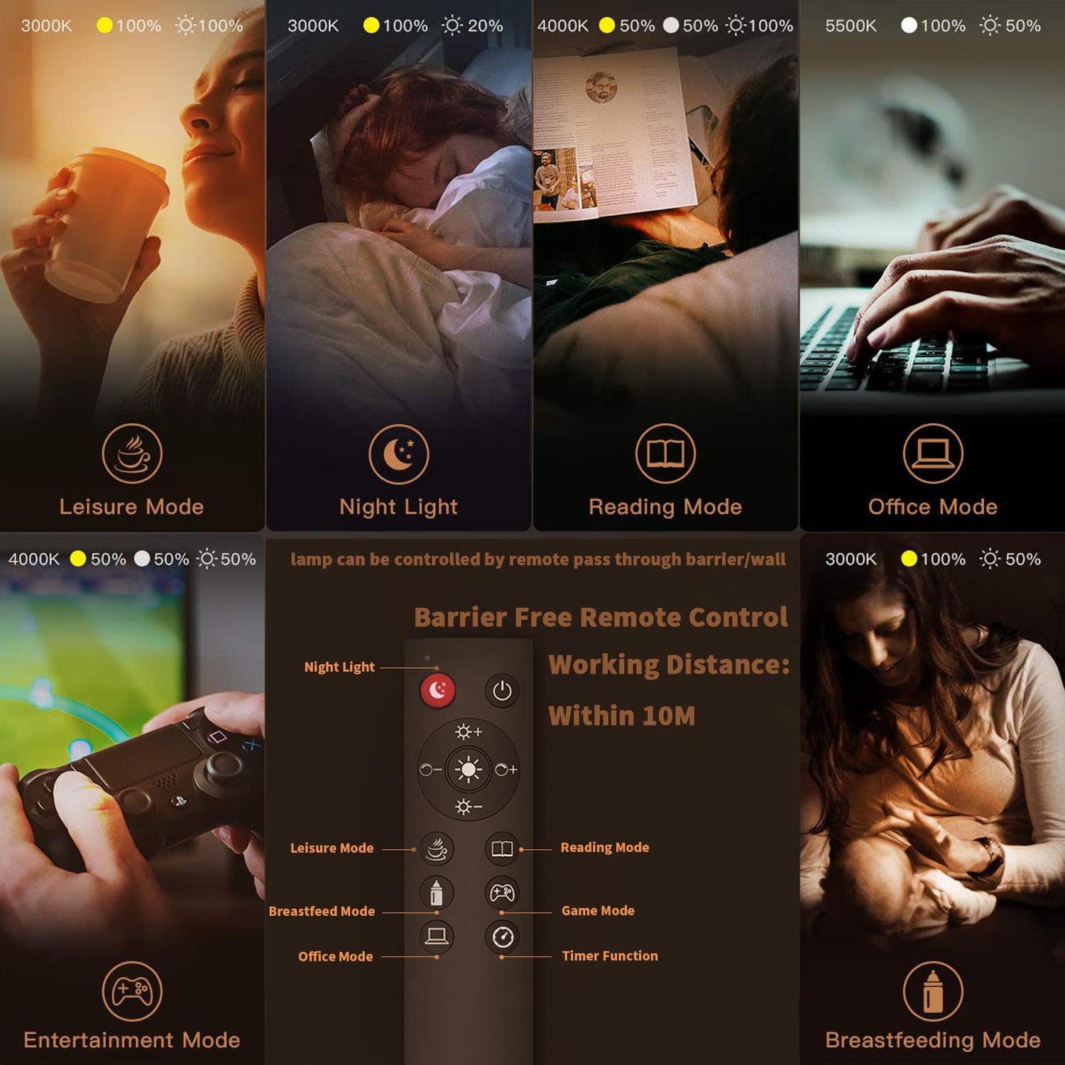 • ☼BERÜHRUNGSSTEUERUNG & FERNBEDIENUNG: Einfache Vier-Tasten Berührungssteuerung Design, um einfach zu bedienen. Mit der barrierefreien Fernbedienung (könnte durch die Wand) können Sie diese Schreibtischlampe in einem Umkreis von 10 m betreiben, ohne aus dem warmen Bett auszusteigen oder den Aufenthaltsort zu verlassen.