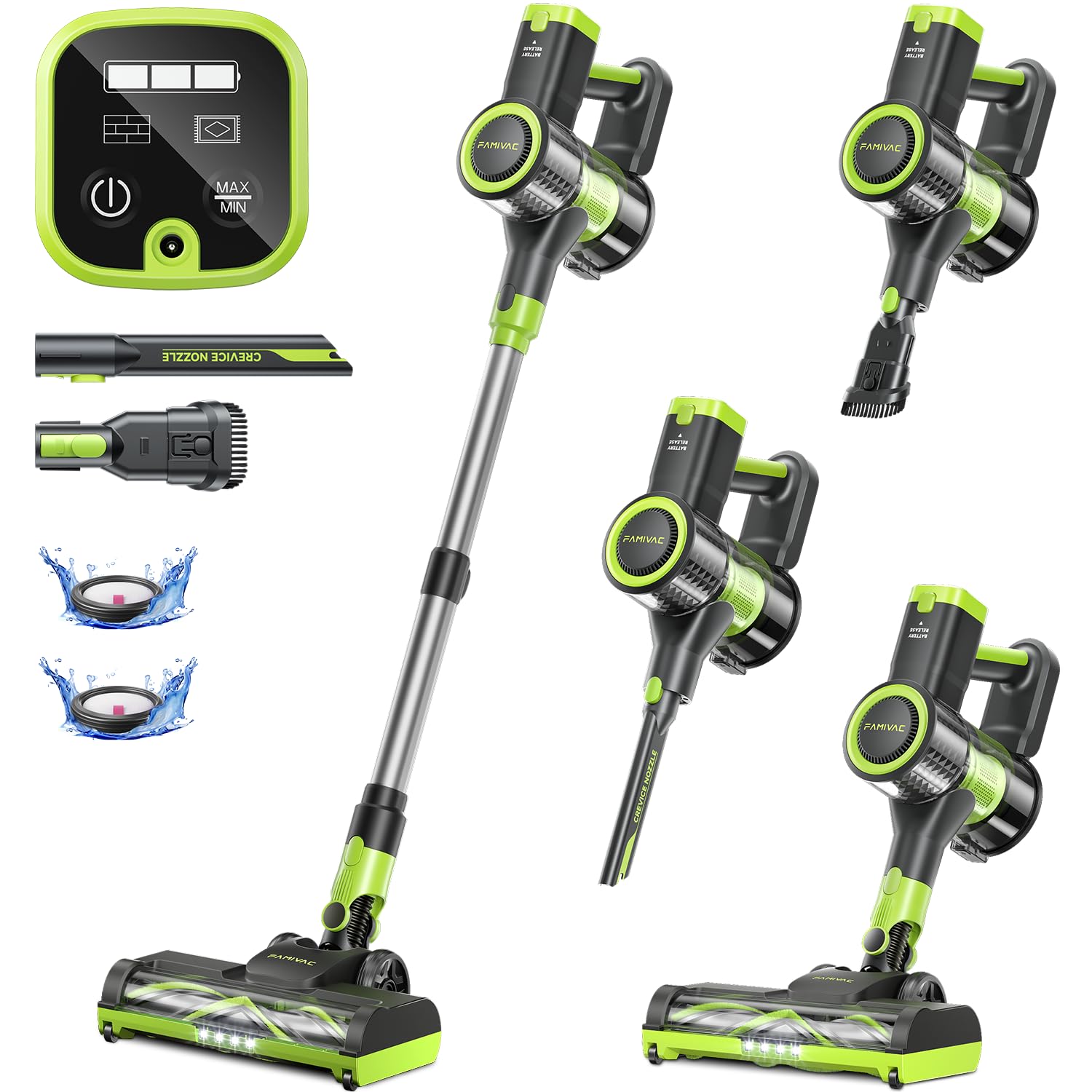 FAMIVAC Akku Staubsauger, 40KPa/550W Kabellos Akkustaubsauger, 6-in-1 Selbststehend, Starke Saugleistung, 6-Stufiges Filtersystem, Ultraleise, V-förmige Bodenbürste für Hartböden/Teppich/Tierhaare