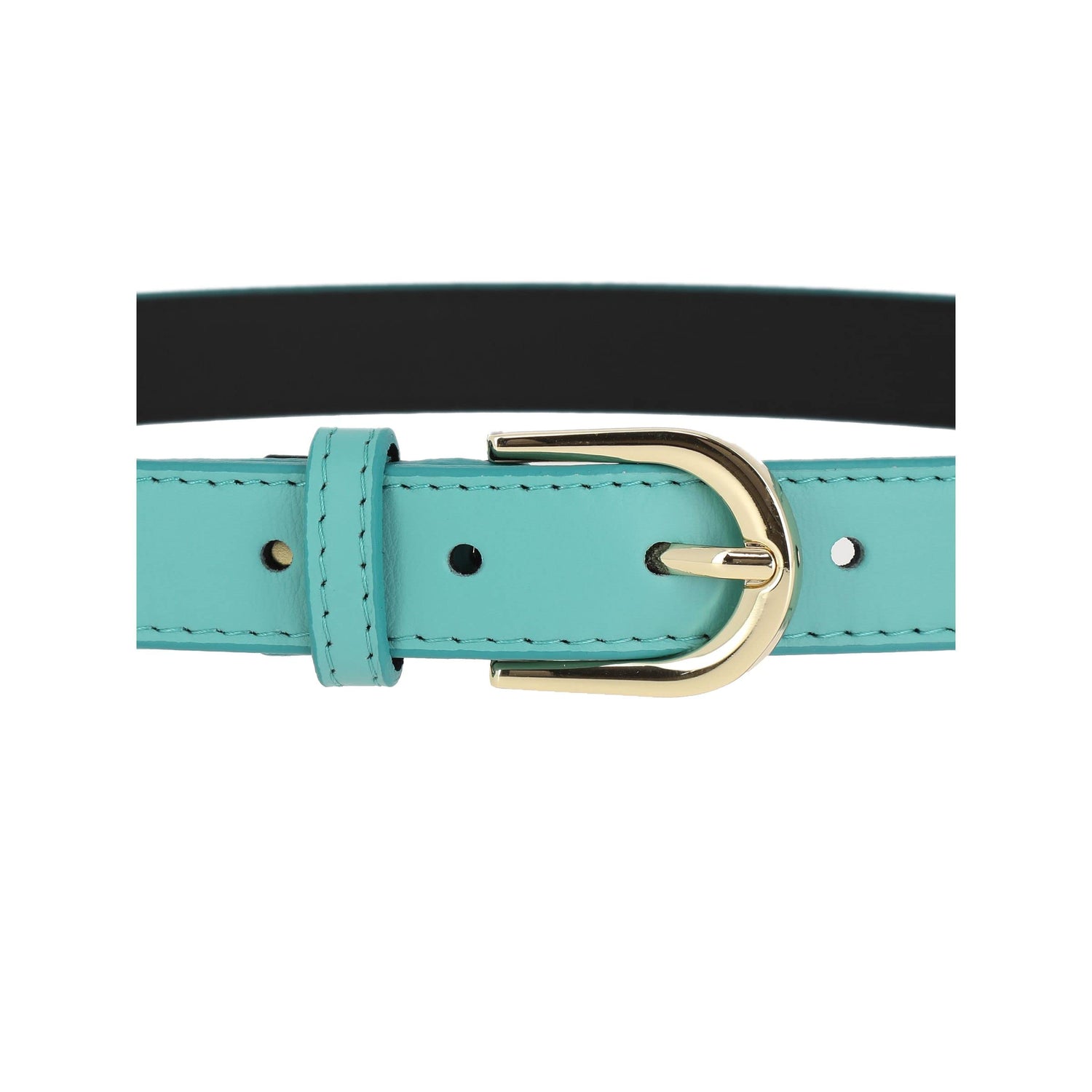 FASHIONGEN - Damengürtel aus italienischem Leder, LUNA - Wasser Blau (Goldenschnalle), 75