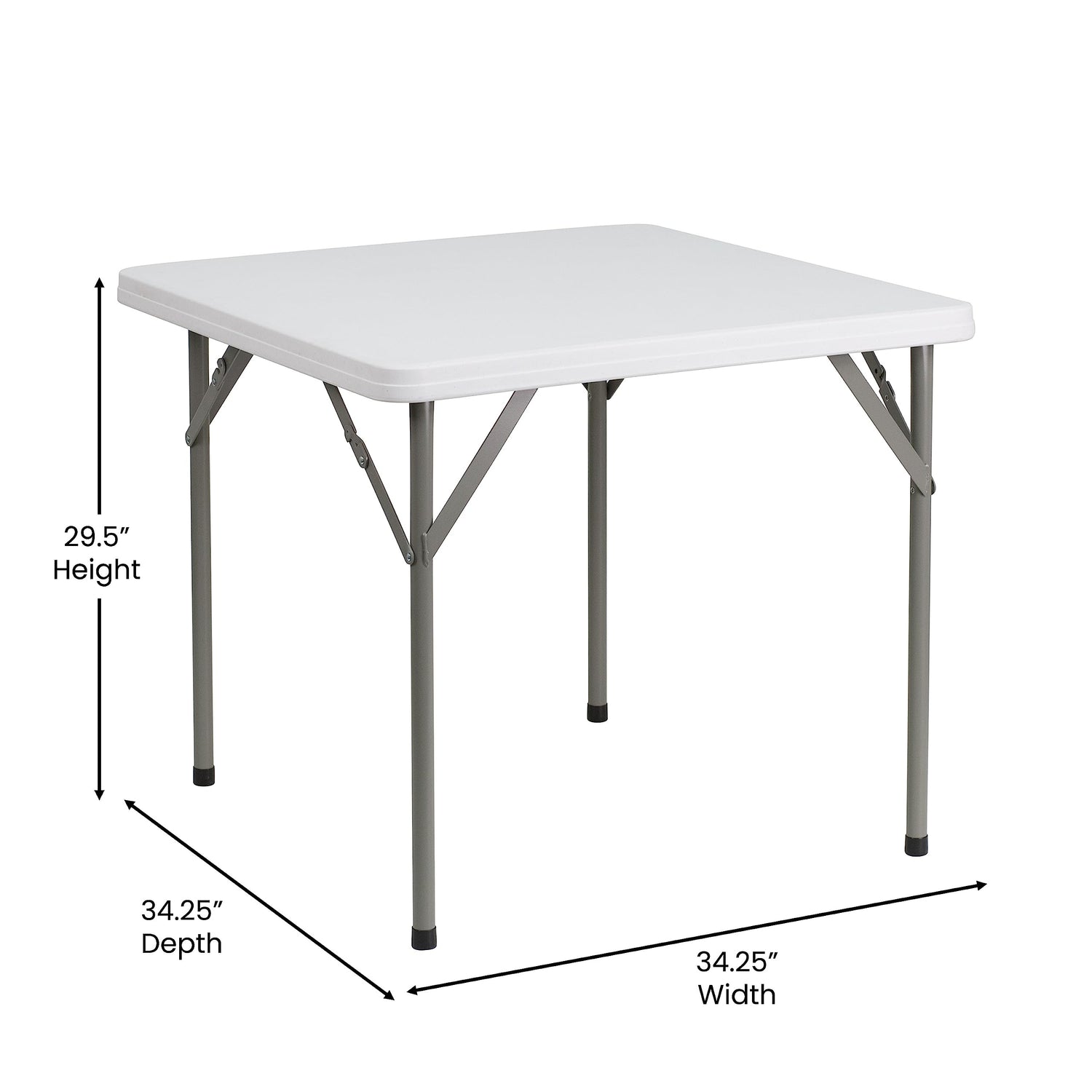 • Produktabmessungen: Gesamtgröße: 86,4 cm Breite x 86,4 cm Tiefe x 73,7 cm Höhe; Tischplatte: 4,45 cm Dicke; statische Tragfähigkeit: 99,79 kg
