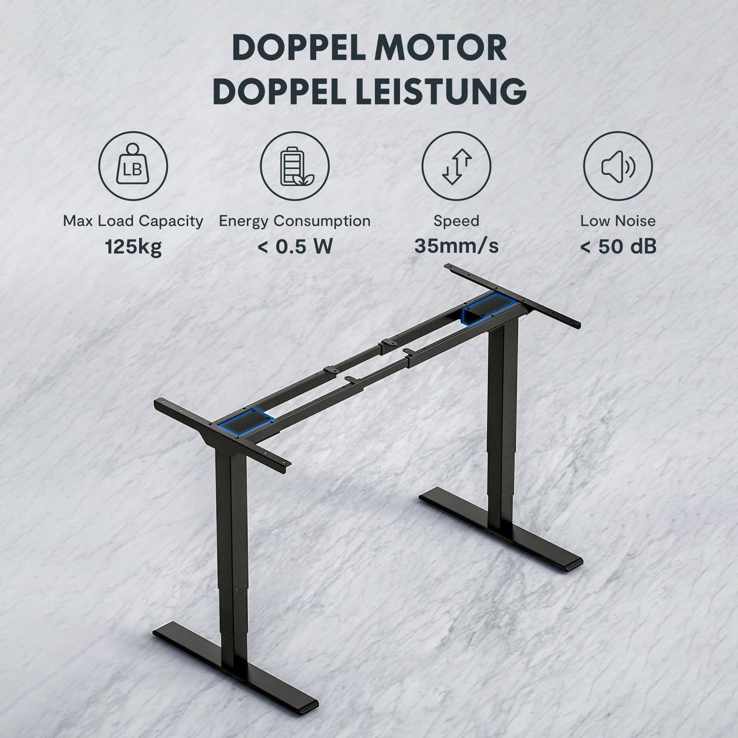 • DOPPELTE KRAFT MIT DUAL-MOTOREN: Die FLEXISPOT EC5 PRO Tischbeine verfügen über eine DOPPELMOTOR- und DOPPELTRÄGERSTRUKTUR mit einer maximalen Belastung von bis zu 160 kg, die schweren Büchern, mehreren Monitoren und anderen hohen Belastungsanforderungen standhält. Die Auf- und Abstiegsrate beträgt bis zu 3,5 cm/s, was im Vergleich zu anderen Schreibtischen auf dem Markt um 70% schneller ist. Mit einer kurzen Pause zum Strecken können Sie schnell Ihre gewünschte Höhe erreichen