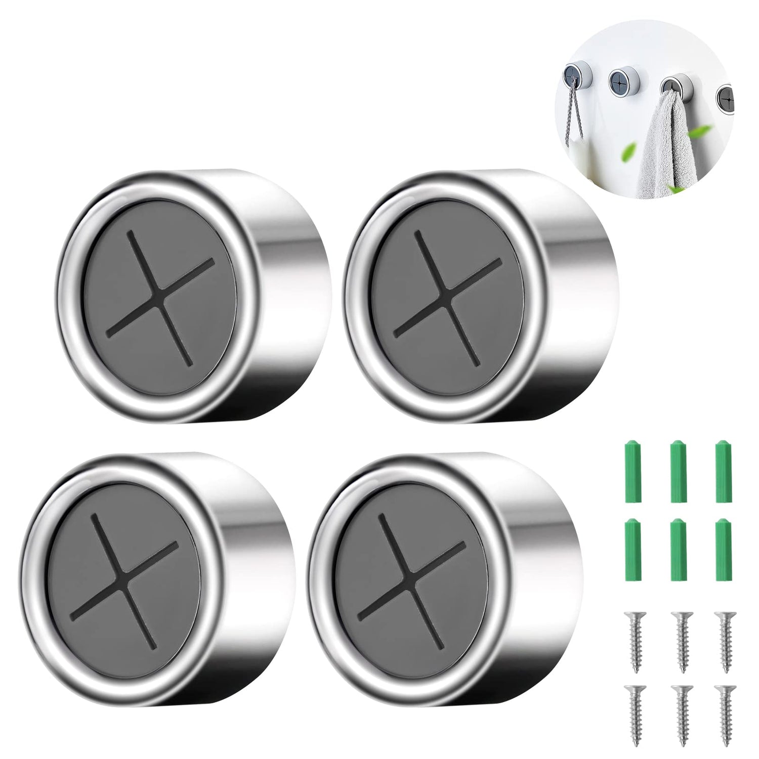 flintronic Geschirrtuchhalter, 4 Stück Handtuchhalter im Set, ABS Handtuchhaken Runden Handtuchklemme, für Bad, Küche und Haushal,Selbstklebender - Silber