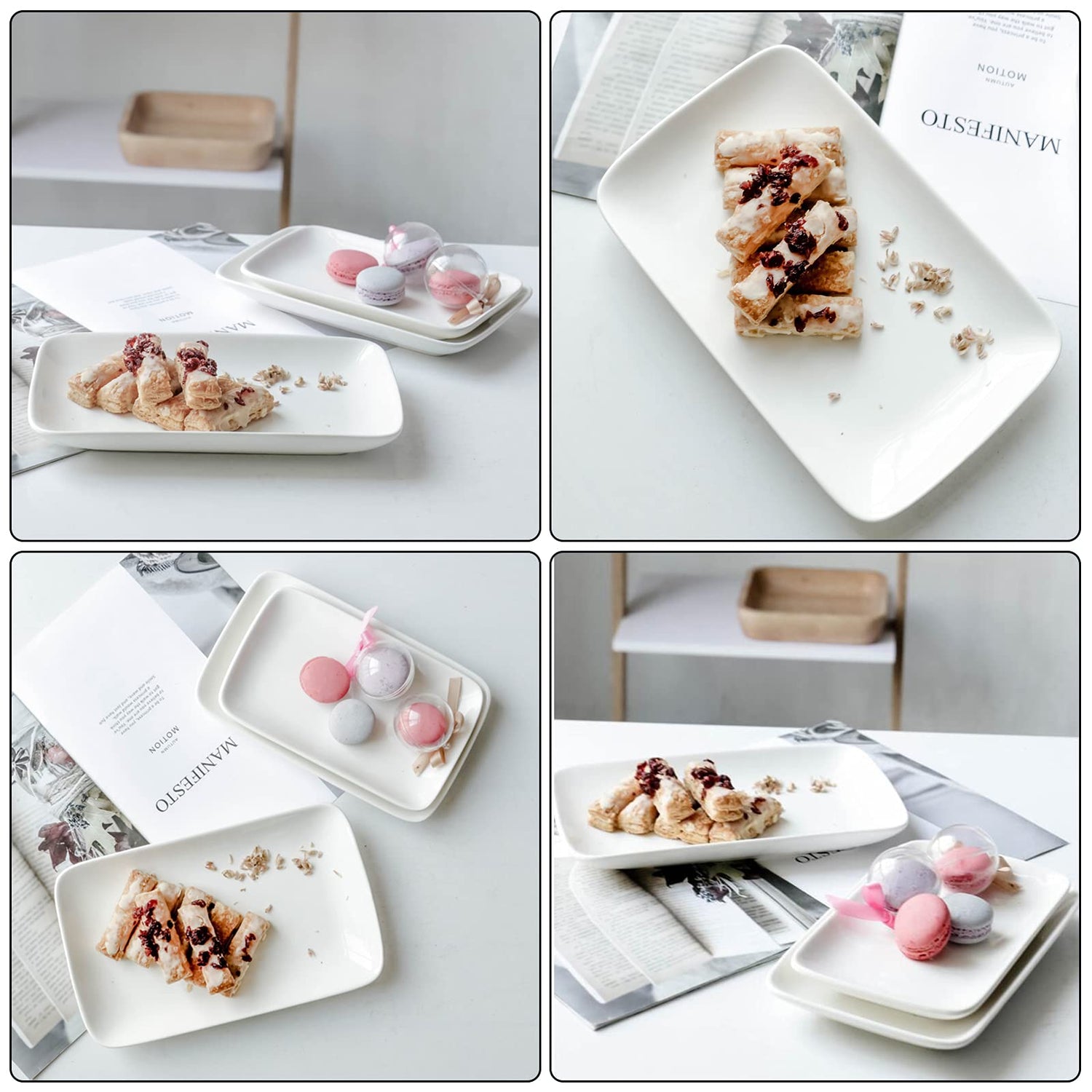 - 【Perfekte Größe für verschiedene Lebensmittel】Vorteilsset mit 8 Servierplatten, jede misst 20,3 cm L x 12,7 cm B x 2,5 cm H, perfekte Größe zum Servieren einer Vielzahl von Speisen wie Sushi, Snacks, Vorspeisen, Desserts, Obst, rohes Gemüse, Cupcakes, Kekse und anderes Gebäck
