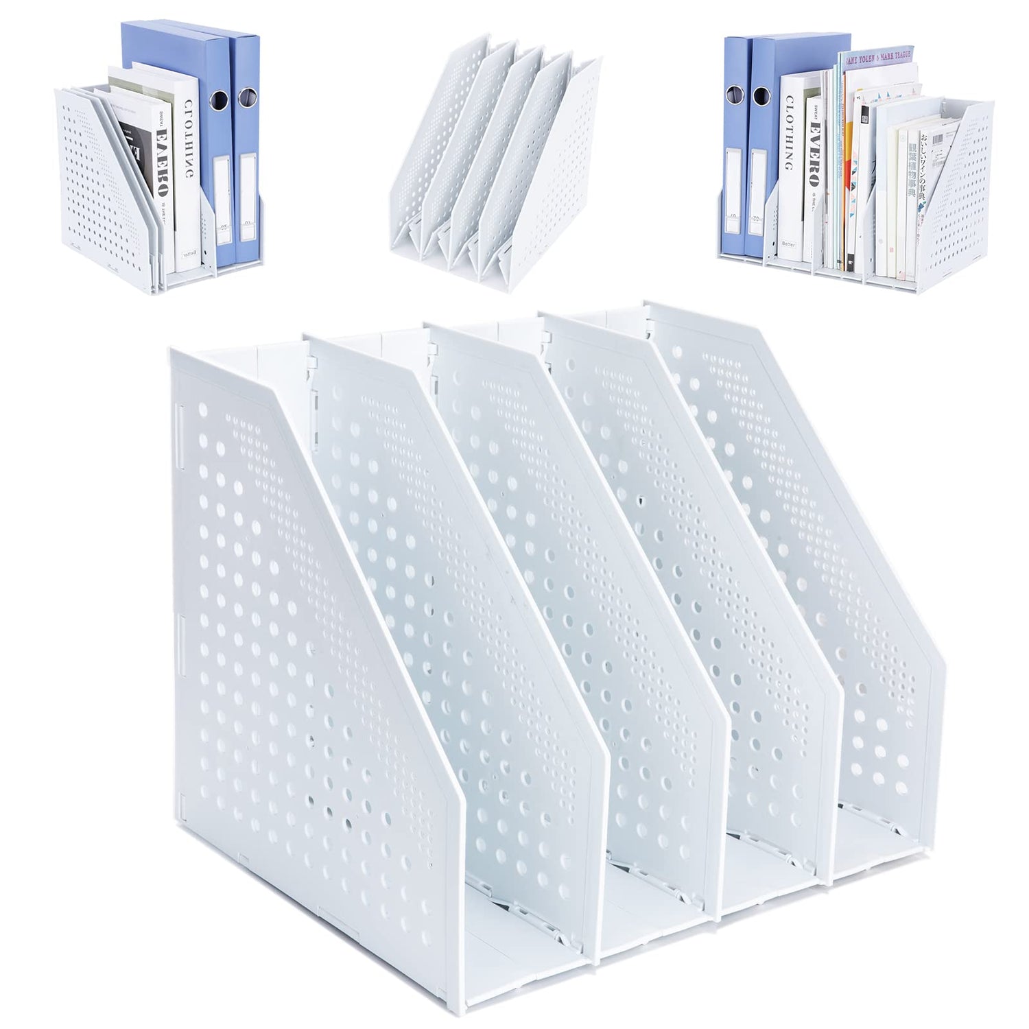• ✯【Aktenmagazinhalter mit 4 Fächern】: Die Breite jedes Fachs beträgt ca. 8 cm und die Gesamtspeicherbreite ca. 32 cm.Es kann 20 bis 60 Bücher oder Zeitschriften aufnehmen, und die Speicherkapazität ist erstaunlich.