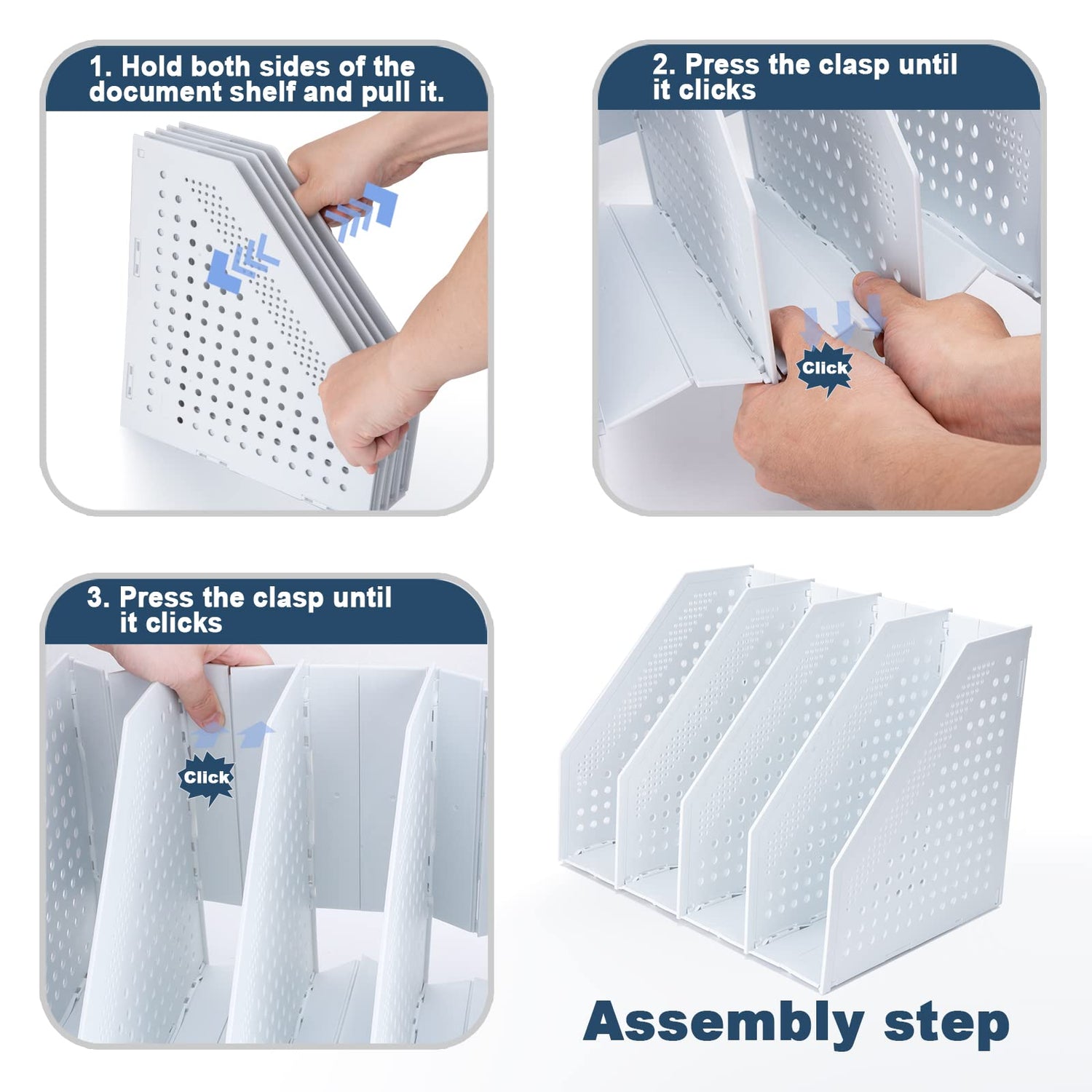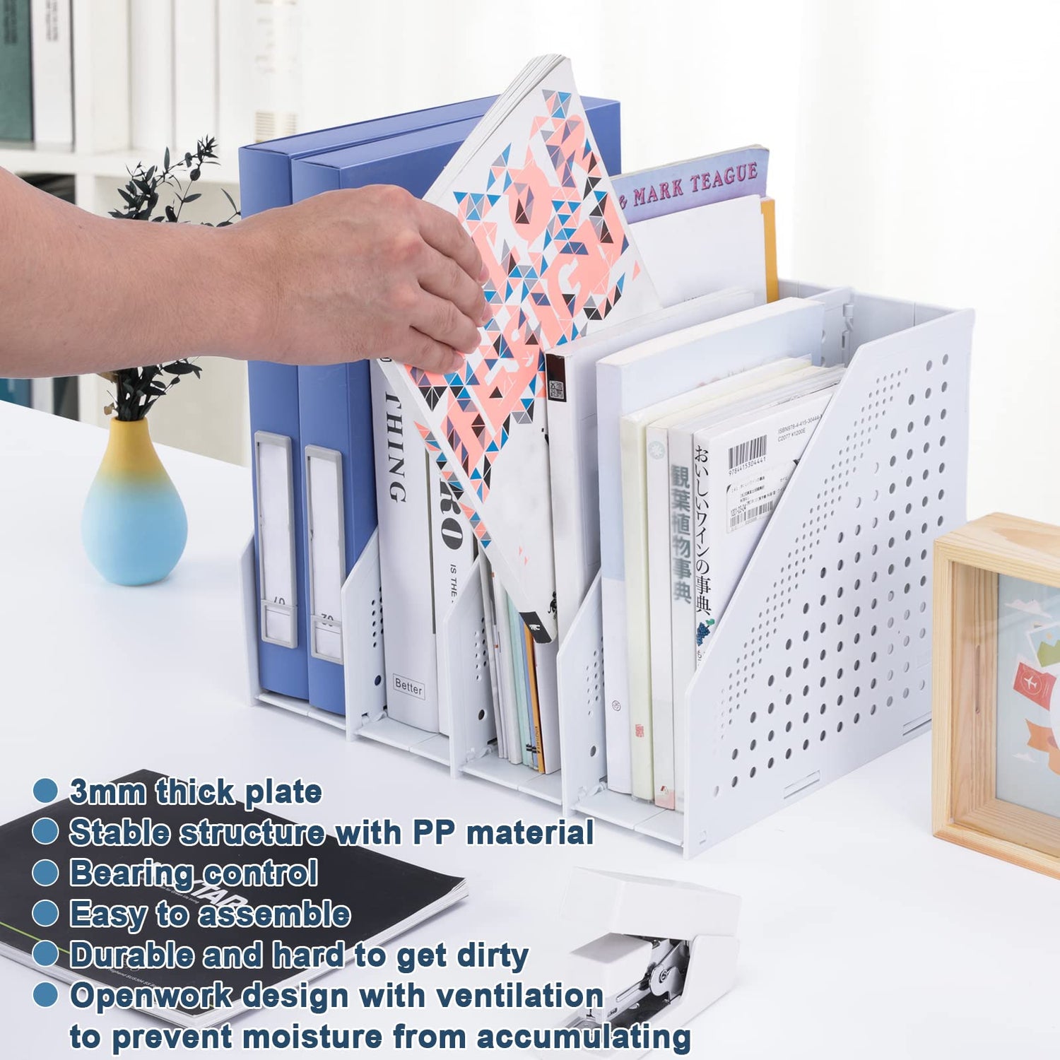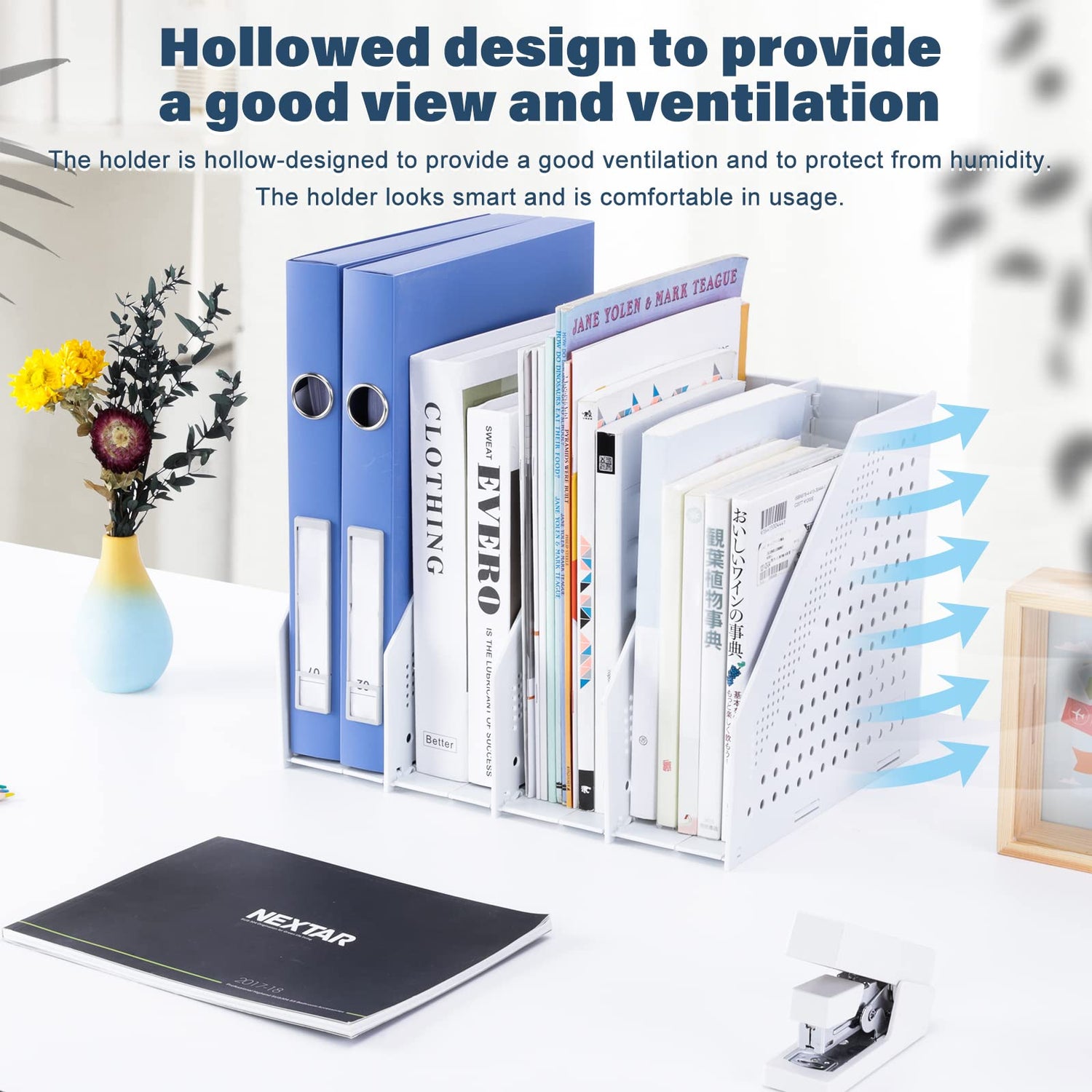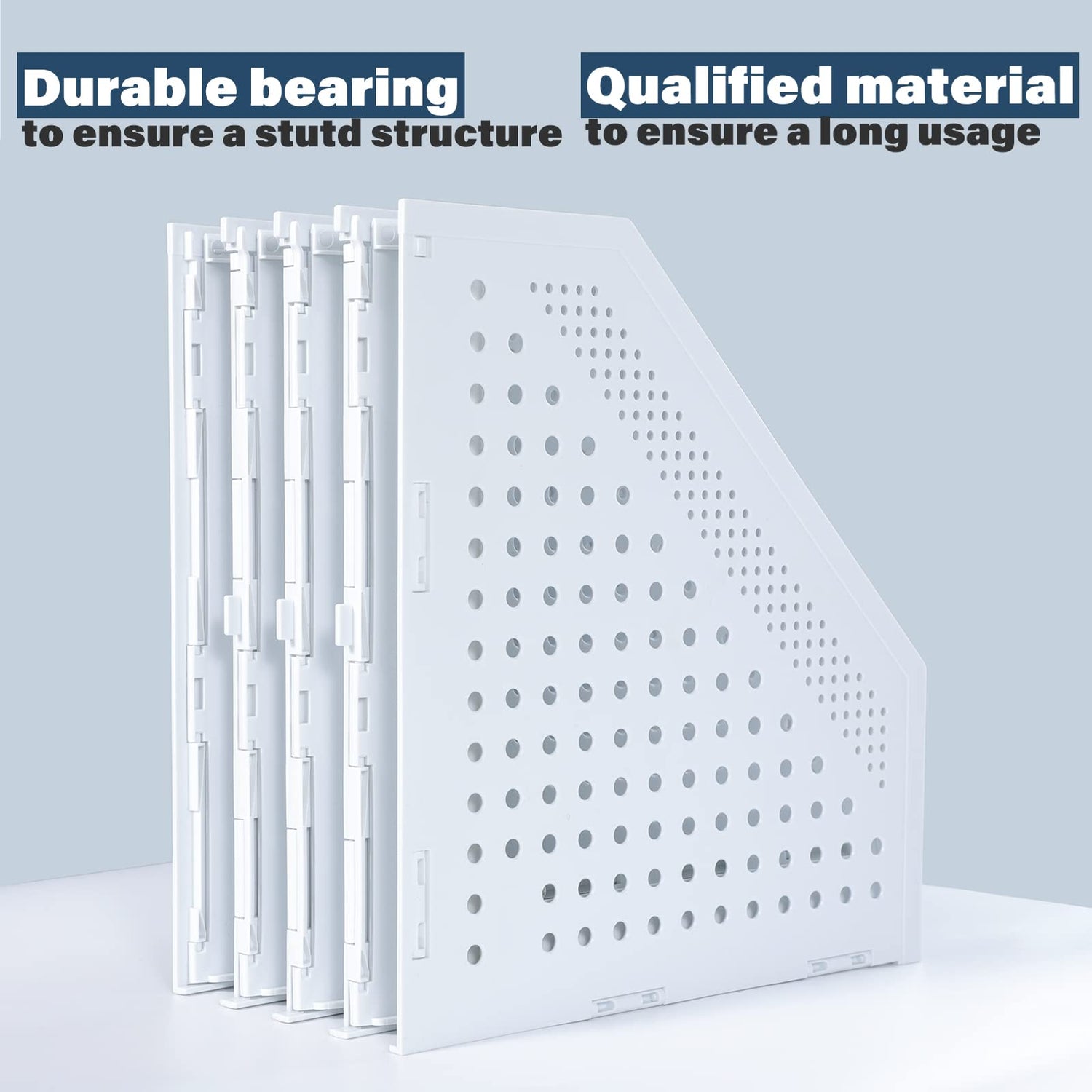 • ✯【Vollständig hohles Design】: Der Aktenmagazinhalter hat insgesamt ein hohles Design, das modisch und schön ist und gleichzeitig gute Belüftungseigenschaften beibehält. Es hat viele Funktionen wie große Kapazität, faltbar, feuchtigkeitsbeständig, organisiert und schützt Buchakten.