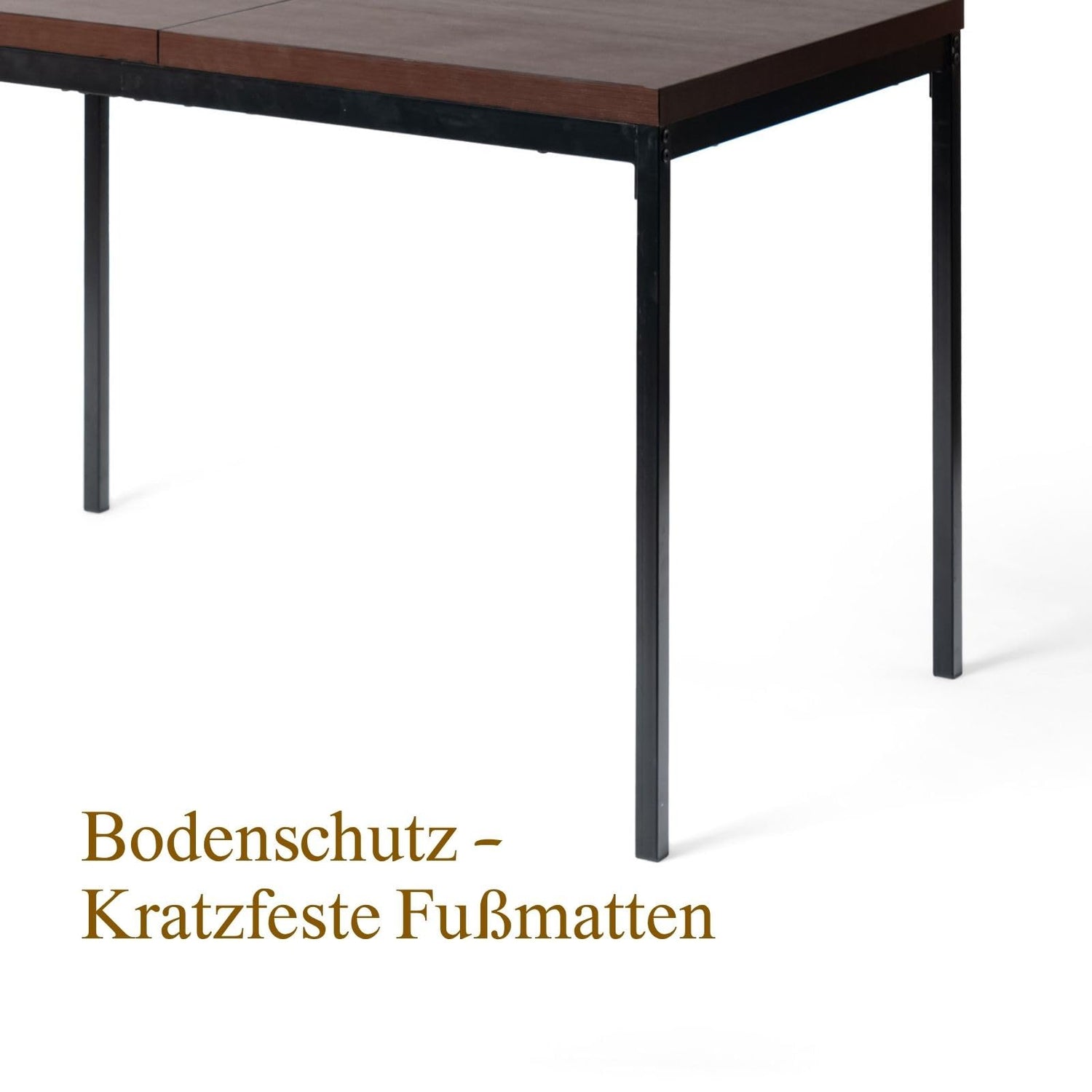 • Professionelles Design: Dunkelbraune MDF-Platte mit Holzoptik und mattschwarzem Metallfuß für modernes Erscheinungsbild.