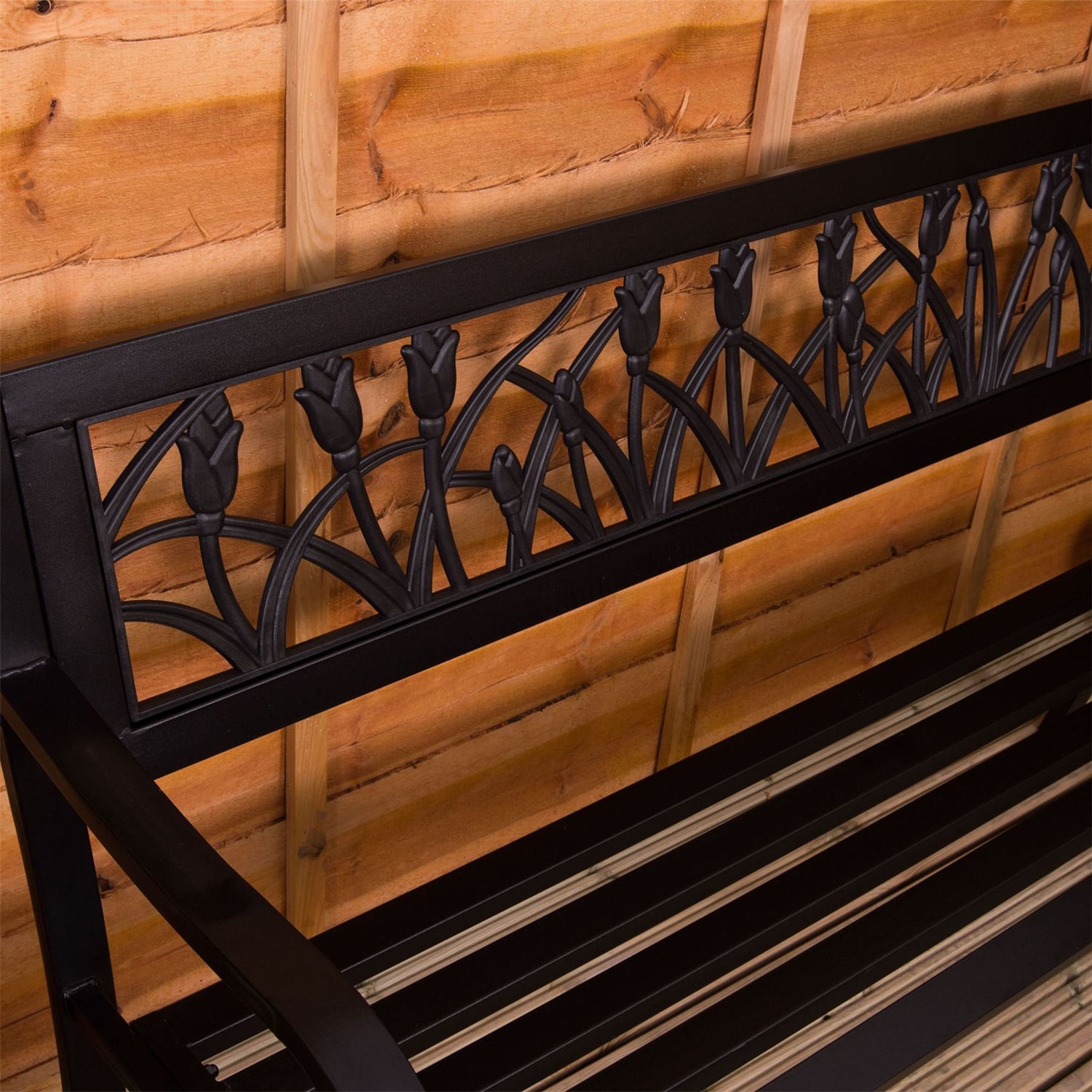 Garden Vida Garde Vida Gartenbank, Stahl, Tulpen-Design, 3-Sitzer, für den Außenbereich, Parkbank, Terrassensitzmöbel, 77 x 125 x 53 cm (H x B x T)