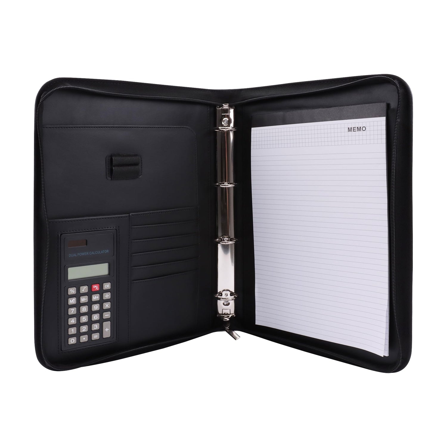 • Elegante DIN A4 Schreibmappe mit Ringbuch, Taschenrechner und Rundum-Reißverschluss