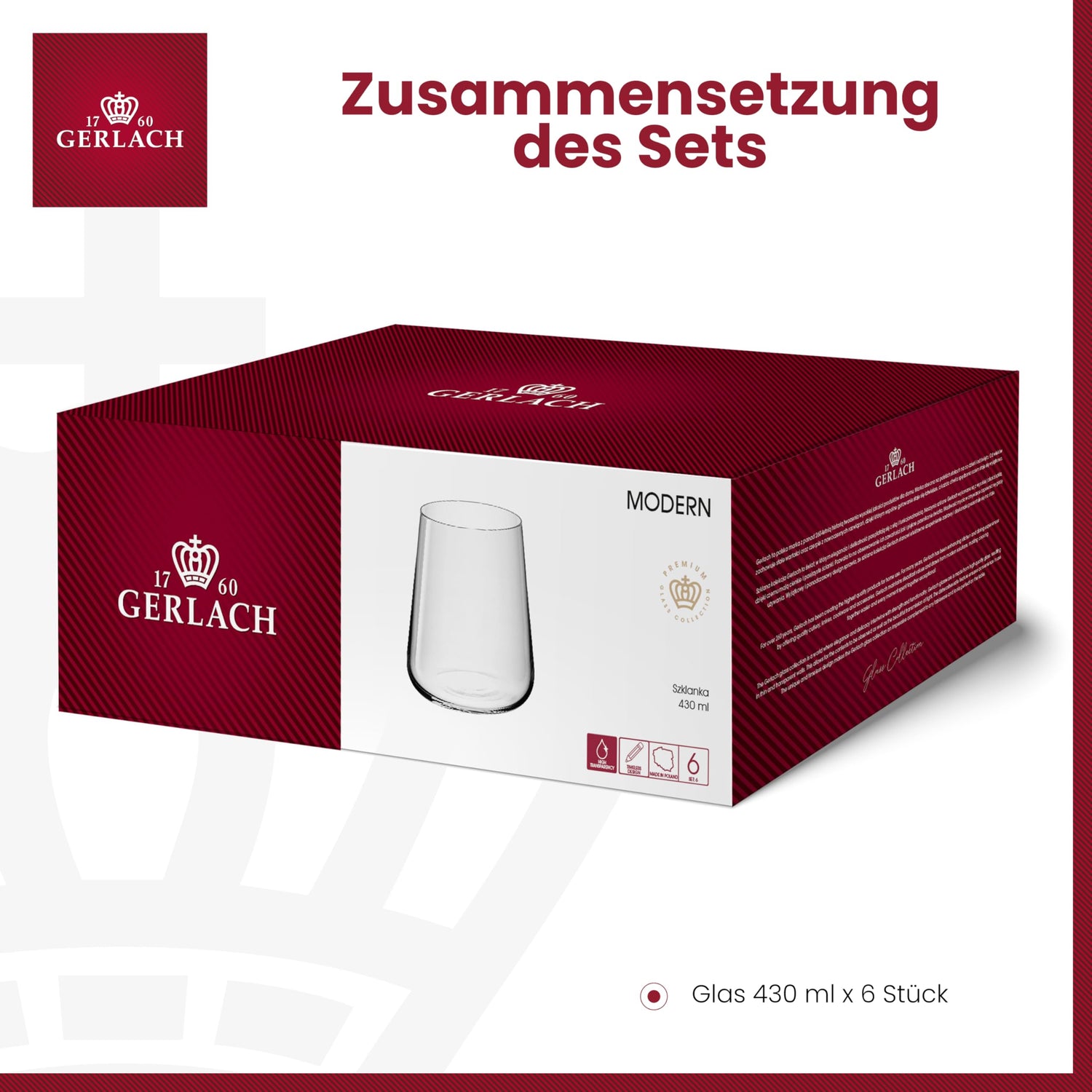 • Inklusive 6 Gläsern mit 430 ml Fassungsvermögen, stilvoll verpackt in einer eleganten Geschenkbox – perfekt als Geschenk geeignet.