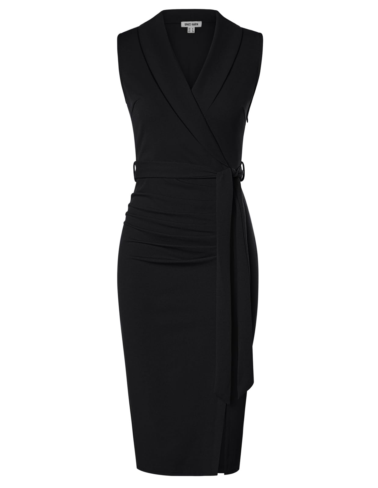 GRACE KARIN Damen Sommer Schwarz Kleider Reverskragen Elegant Bodycon Businesskleider Hochzeitsgäste Kleider 38
