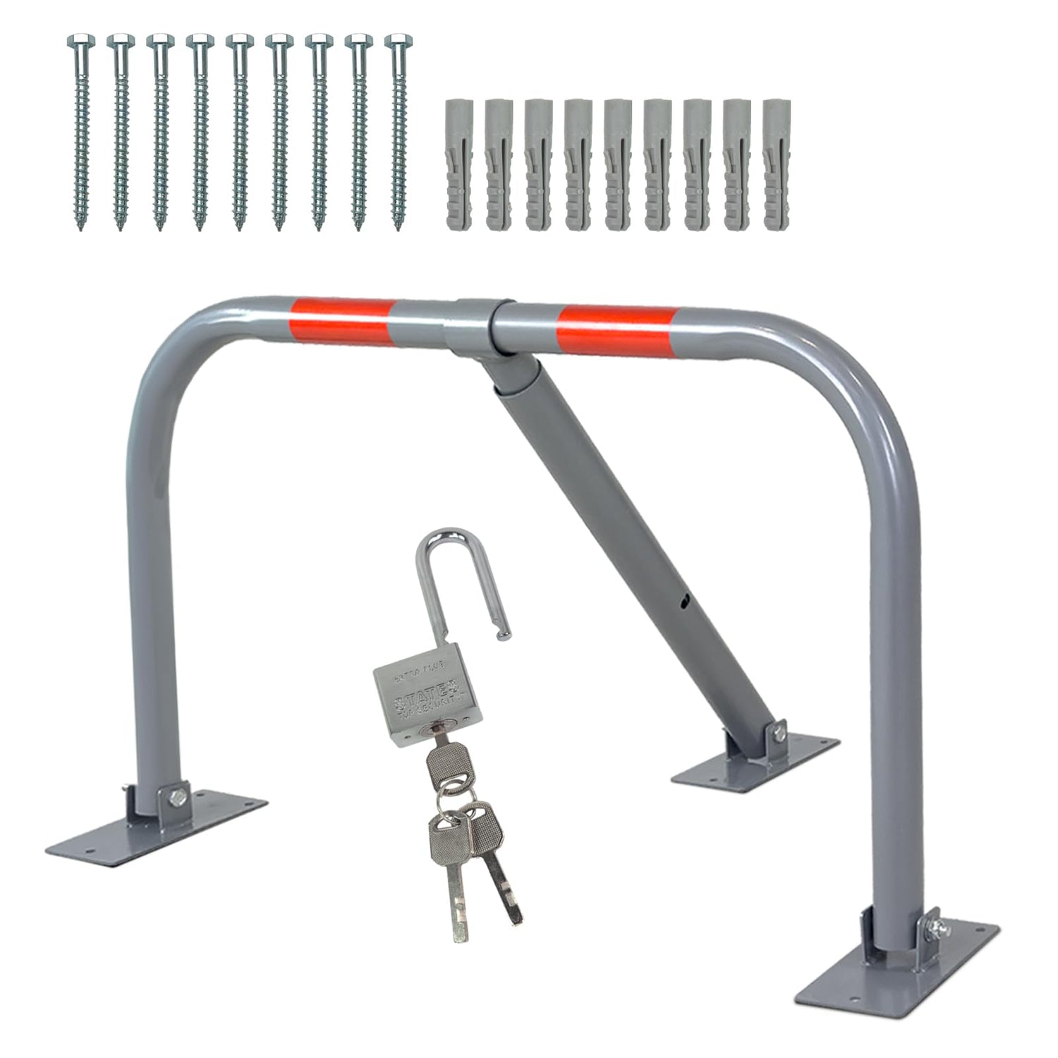 • PRAKTISCH: Mit unserer klappbaren Parkplatzsperre lässt sich ab sofort Ihr Parkplatz, eine Zufahrt oder ein Be- und Entladebereich im Handumdrehen gegen fremde Fahrzeuge sichern. Der Parkbügel lässt sich mit dem beigefügten Schloss verriegeln und blitzschnell umlegen, sodass der geschützte Bereich bequem befahren werden kann.