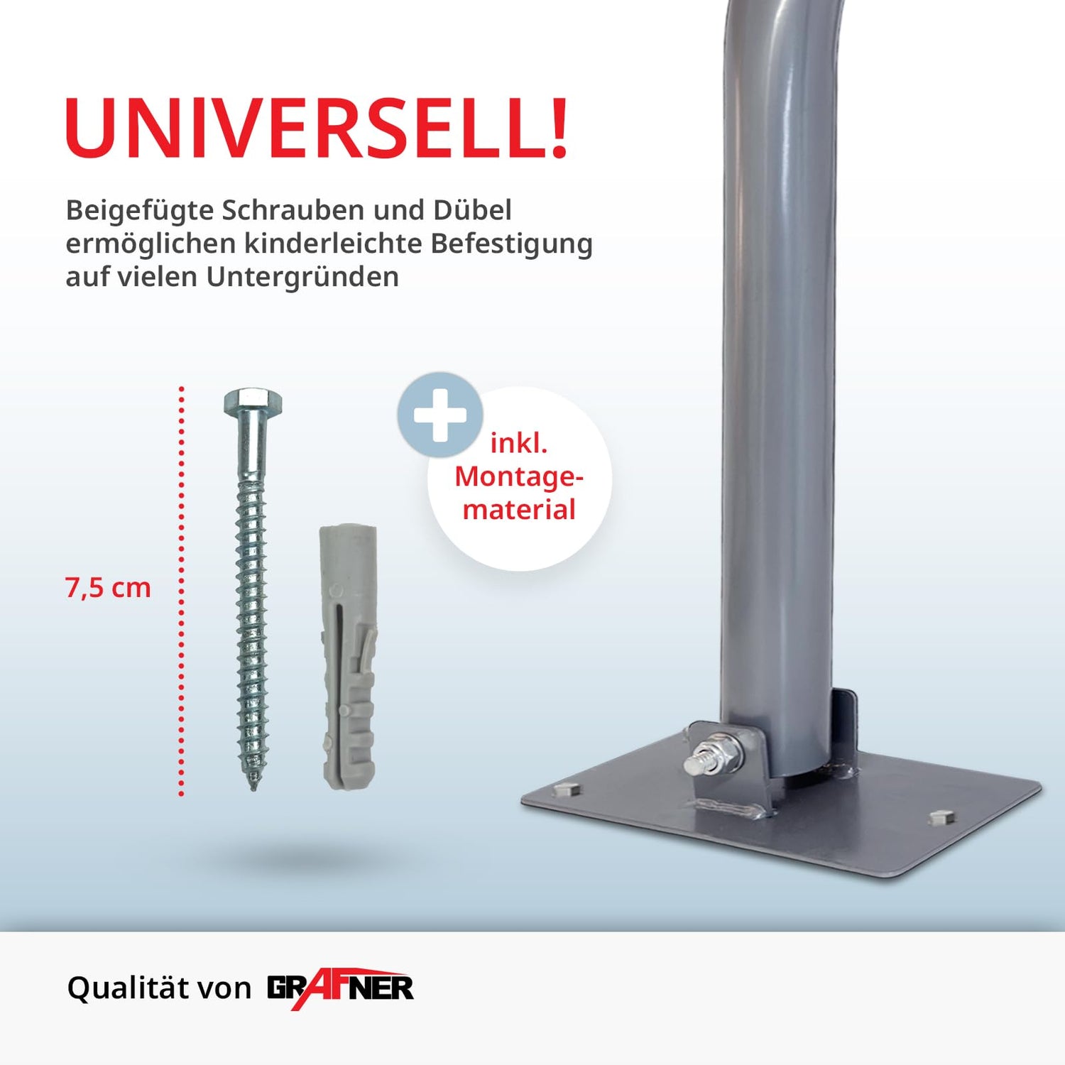 • UNIVERSELL: Mit den beigefügten Schrauben und Dübeln lässt sich der Parkbügel auf vielen Untergründen kinderleicht befestigen: Ob auf Asphalt, Beton oder Pflastersteinen – es ist jederzeit ein stabiler Halt und zuverlässiger Schutz Ihrer Parkfläche garantiert.