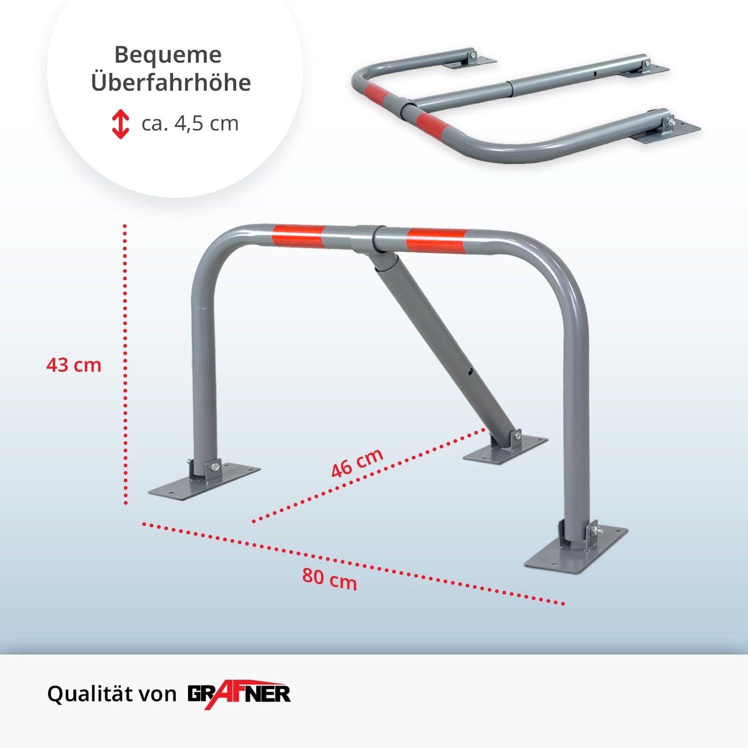 Grafner Parkplatzsperre klappbar mit Schloss und 3 Schlüssel, stabiles Stahlrohr mit Pulverbeschichtung, Parkplatzbügel Parkplatzblockierer Parkpfosten Sperrpfosten Parkbügel Poller Absperrpfosten