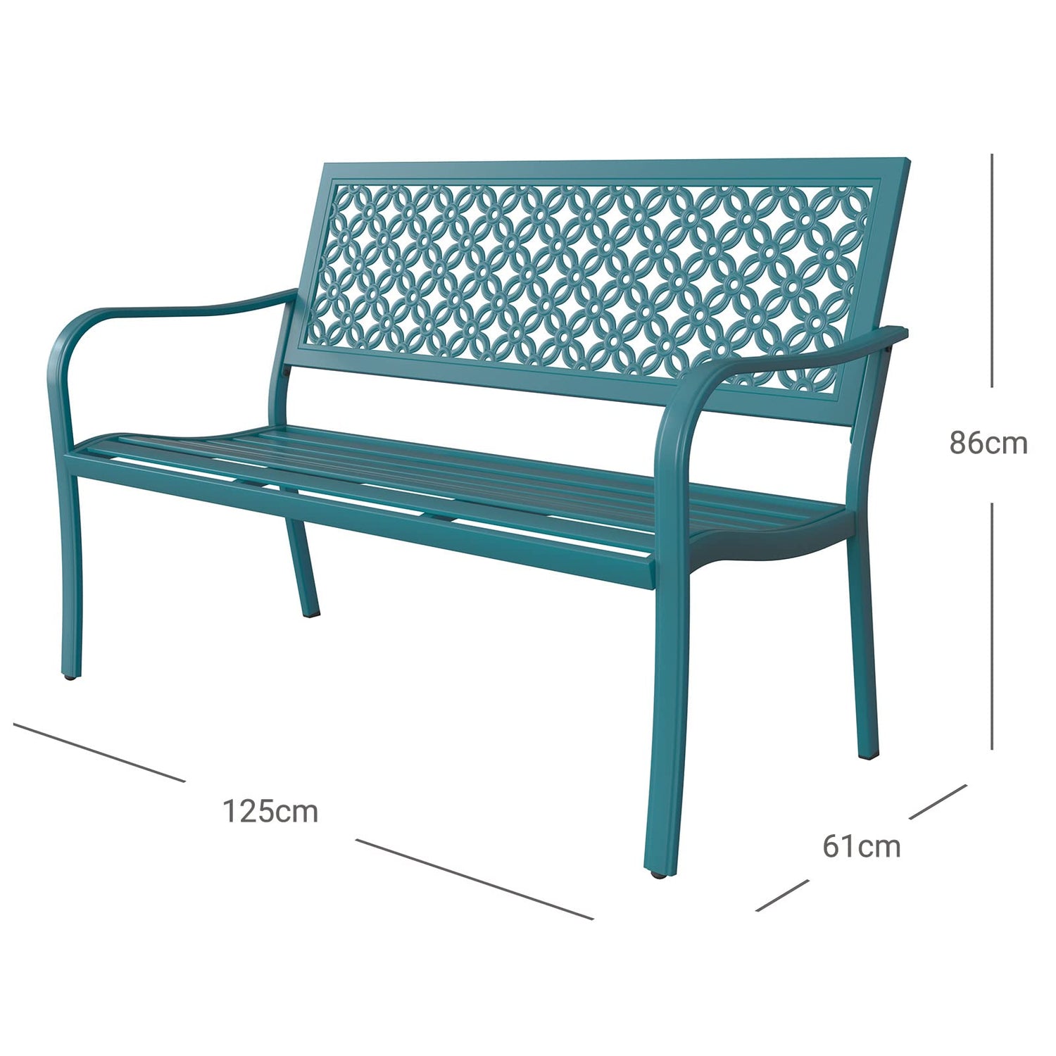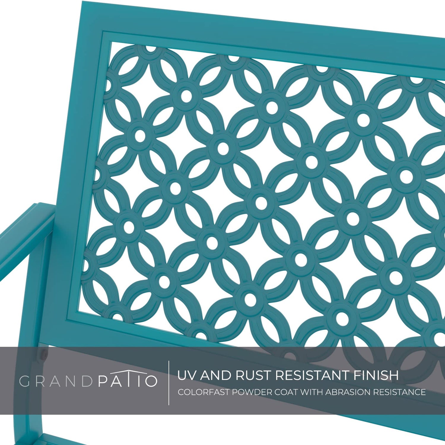 Grand patio Gartenbank Metall, Parkbank mit Rückenlehne & Armlehne, Eisenbank für 2-3 Sitzer, Ruhebank Retro-Stil, Gartenmöbel Stahl Gusseisen, Bänke für Garten, Park, Balkon (Frostige Minze)
