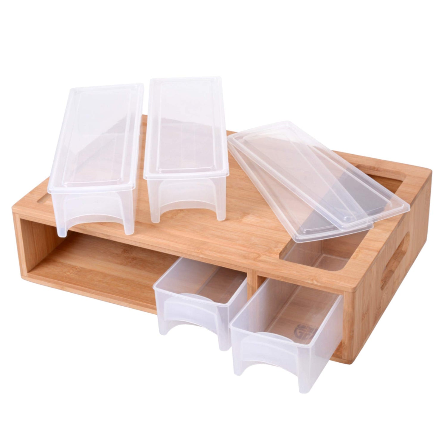 • Dank der vier enthaltenen Schübe können Sie unterschiedliche Zutaten direkt beim Schneiden sortieren. Egal ob Abfall oder Schnittgut, alles ist ordentlich aufbewahrt und griffbereit