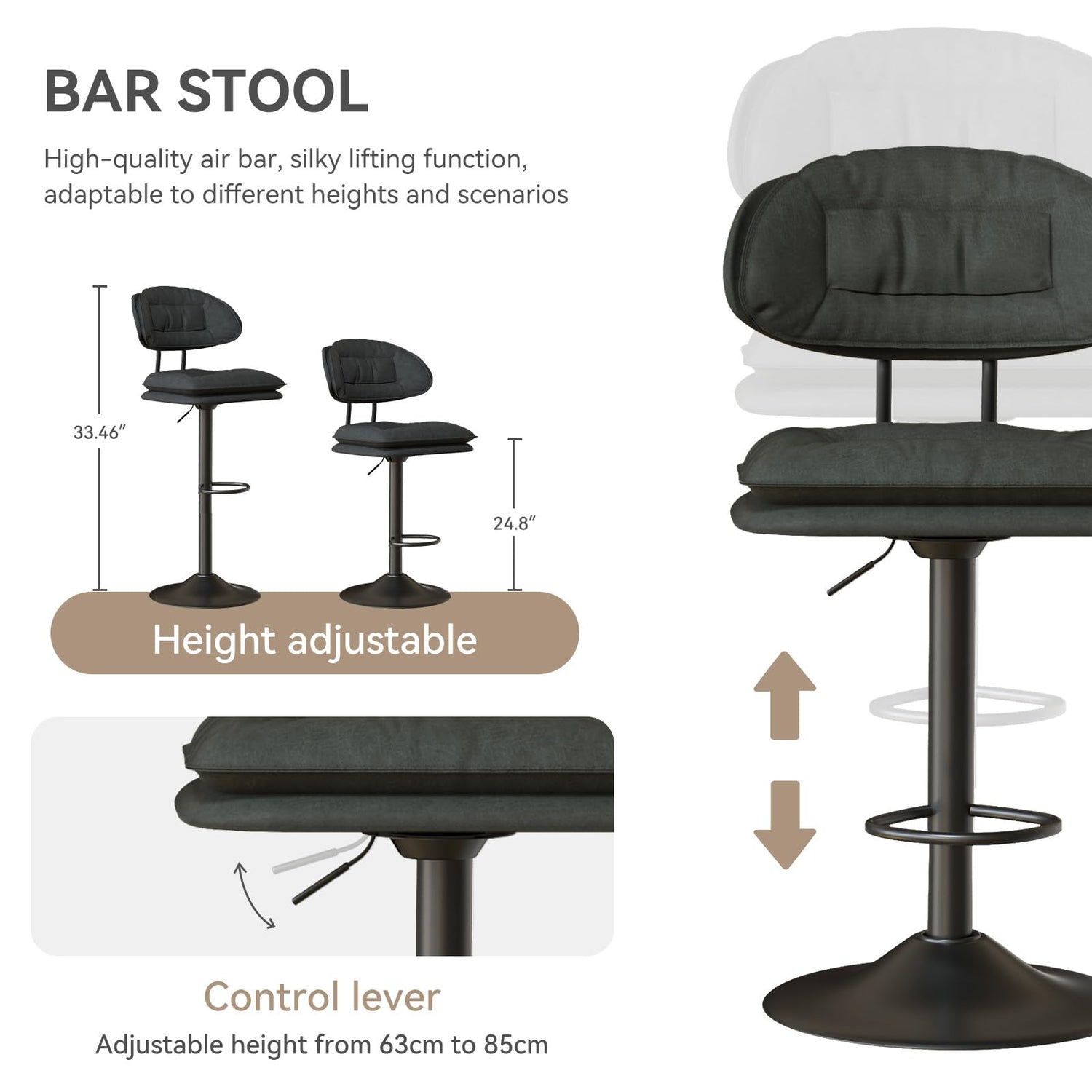 Hawthyhome Barhocker 2er Set, Ergonomische Gepolsterte Barhocker mit Rückenlehne, Verstellbare Doppellagige Barstuhl, für Esszimmer Heimbar Kücheninsel, 2 x Hocker (Dunkelgrau)
