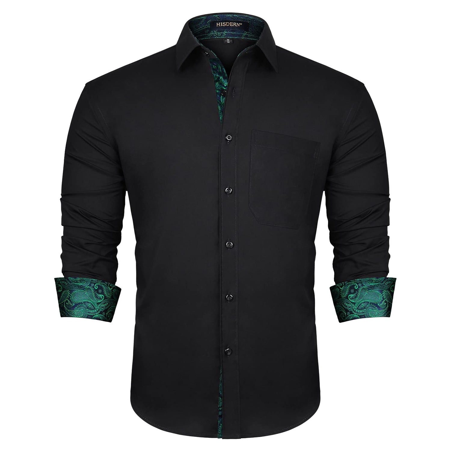 HISDERN Herren Hemd mit klassischem Kragen Herren Hemd mit klassischem Kragen Schwarz Grün Paisley Hemd Casual Formal Button Down Regular Fit Hemden Langarm