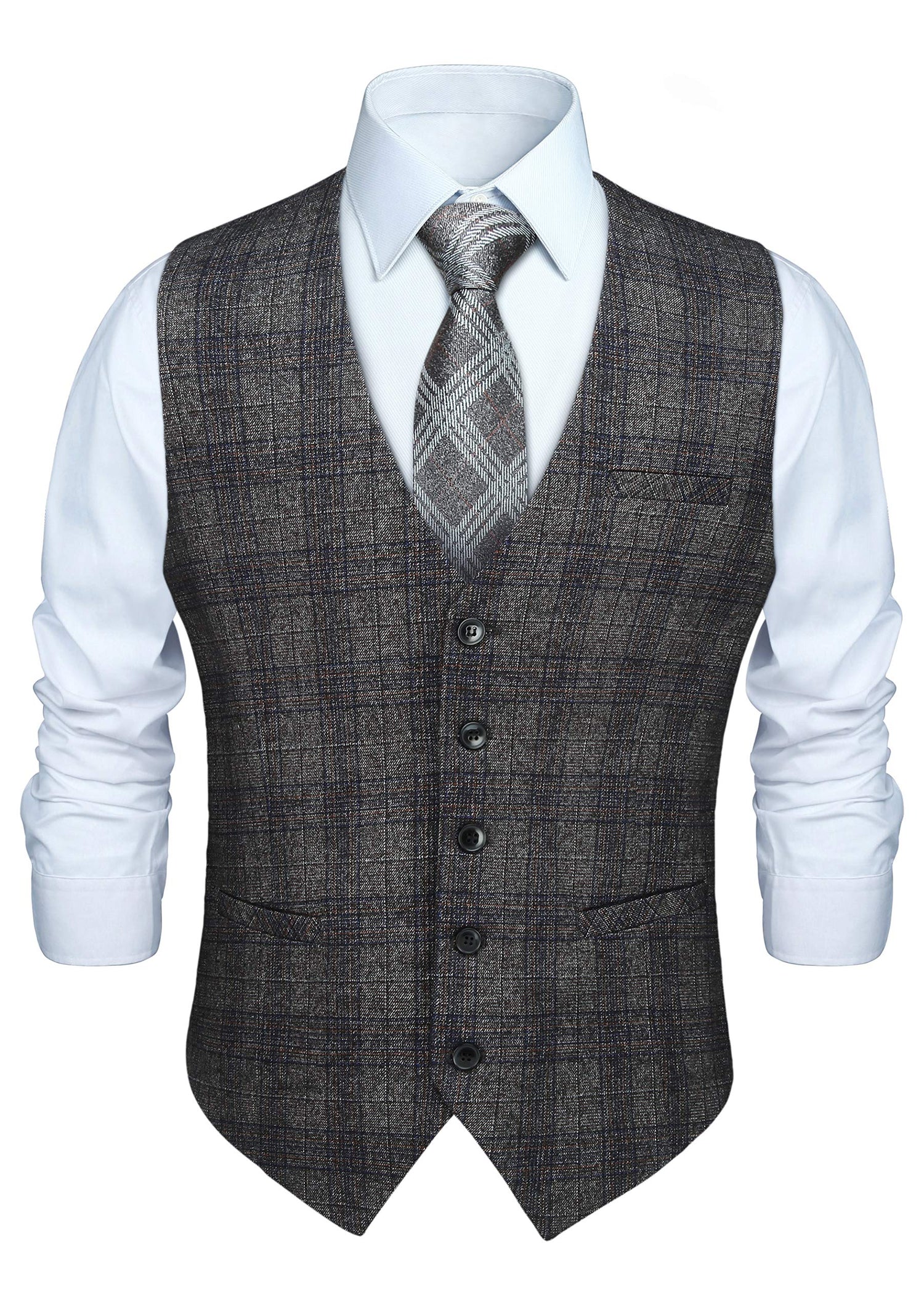 HISDERN Herren Karierte Weste formale klassische Weste Baumwolle Hochzeit Hahnentritt Anzug Westen Grau L