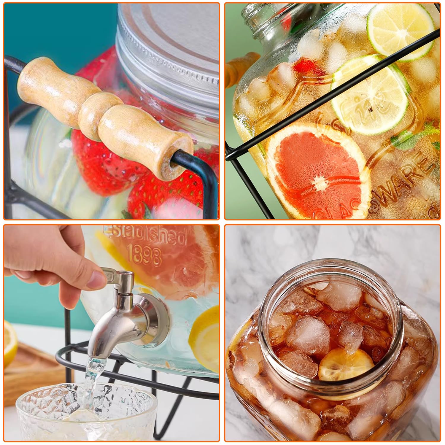 Hiziwimi 4L Glas-Getränkespender mit Deckel Weithals-Eisgetränkeglas mit Bügeleisenhalter, für Eissaft, Wasser, hausgemachte Teegetränke