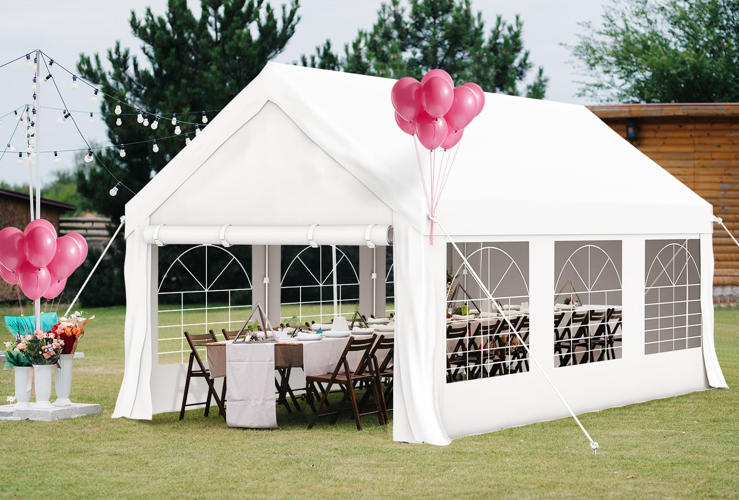 • ✔【100% Wasserdicht Und Sonnendicht】: Das HOMELL-gartenzelt besteht aus 170g hochwertigem PE-Stoff, das Zelt hat 6 hochwertige PVC-Fenster an der Seite, 100% wasserdicht, UV-beständig, korrosionsbeständig und langlebig.