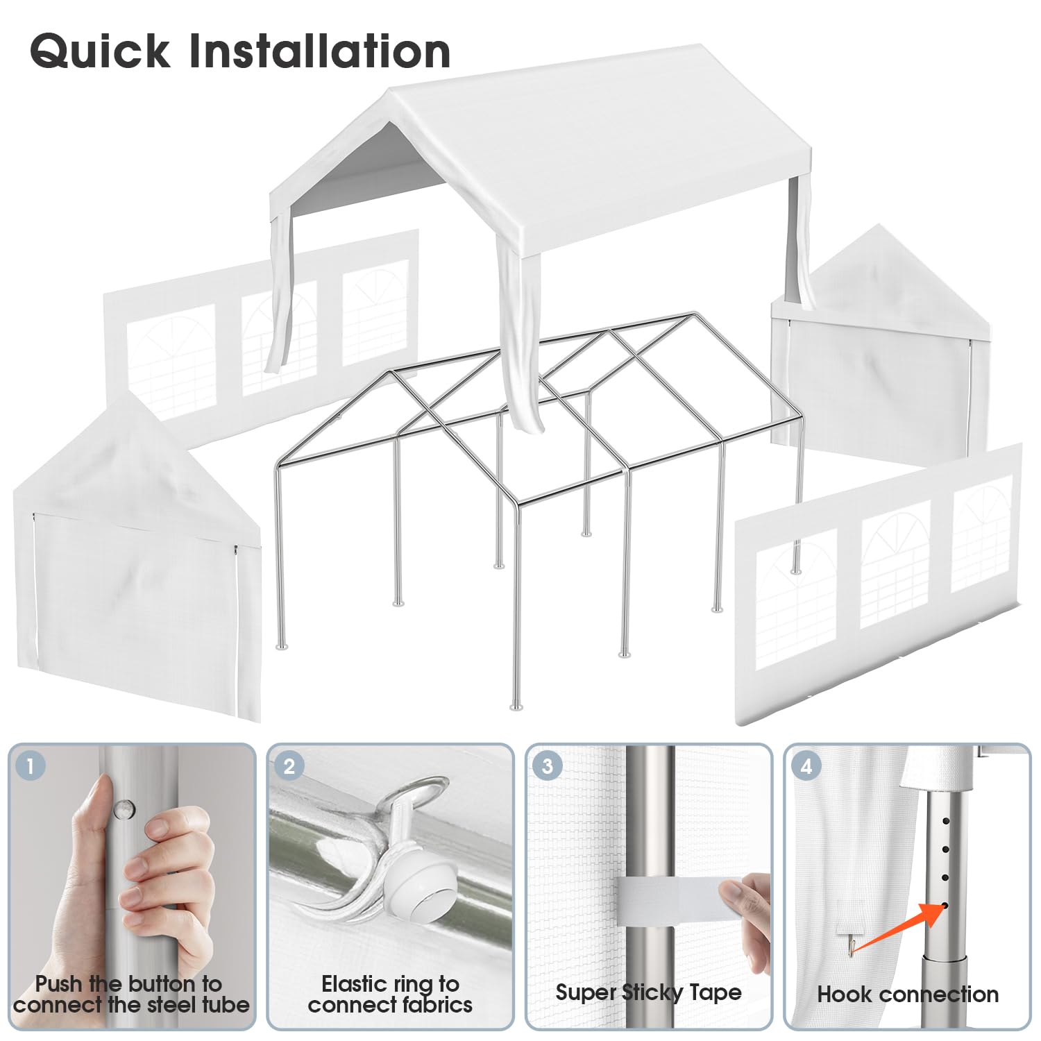 • ✔【Schnelle Montage】: HOMELL Partyzelte sind einfach zu montieren, Die Anweisungen sind klar und leicht zu verstehen,Sie brauchen kein zusätzliches Montagewerkzeug, der Stahlrahmen kann mit Hilfe von Verbindungsstücken schnell zusammengebaut werden, PE-Gewebe kann mit Hilfe von Verbindungsschlaufen und Klebebändern an den Stahlrahmen gebunden werden, Sie können das Zelt schnell auf- und abbauen.