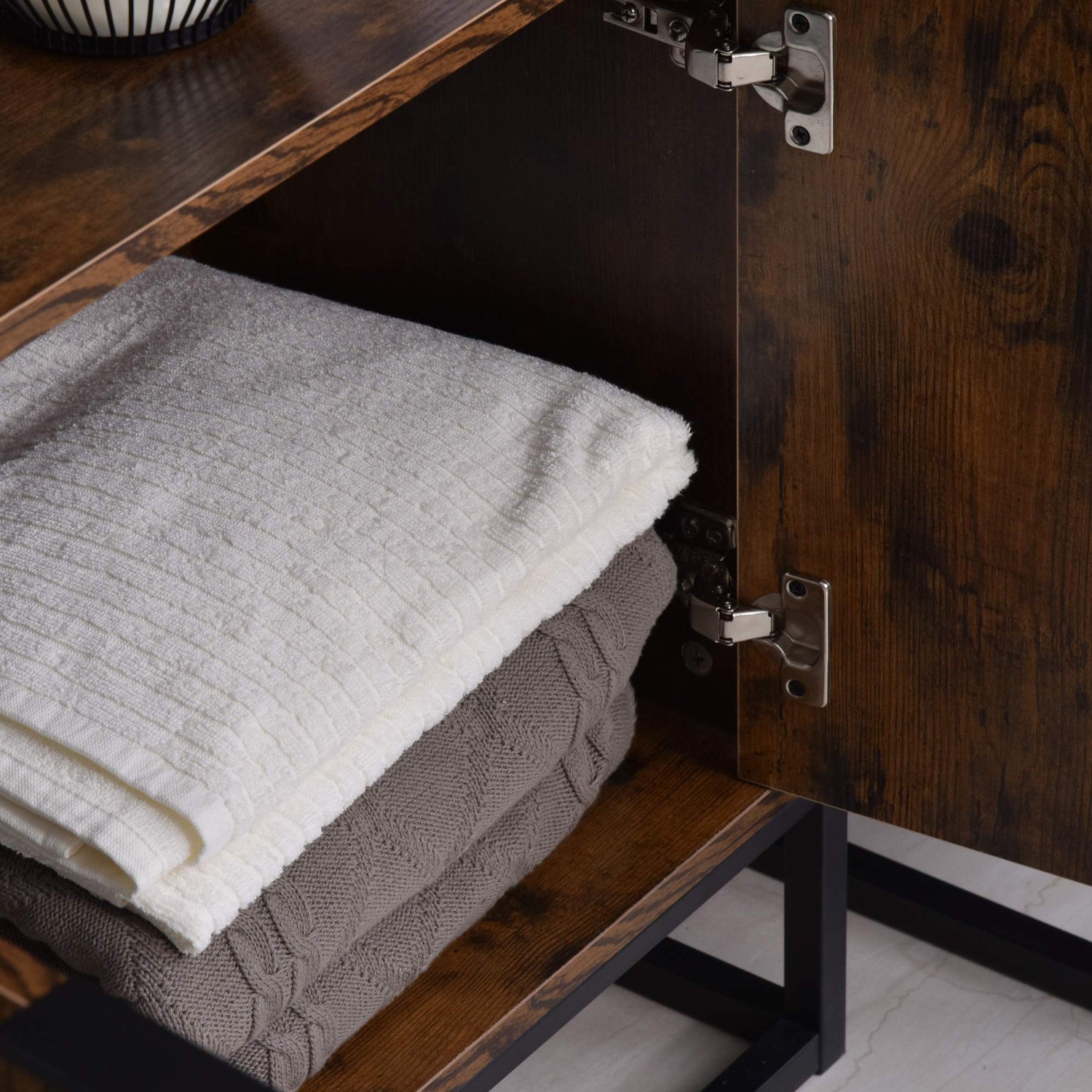 • Praktisches Design: Der erhöhte Metallsockel erleichtert die Reinigung unter dem Regal und schützt vor Feuchtigkeit.