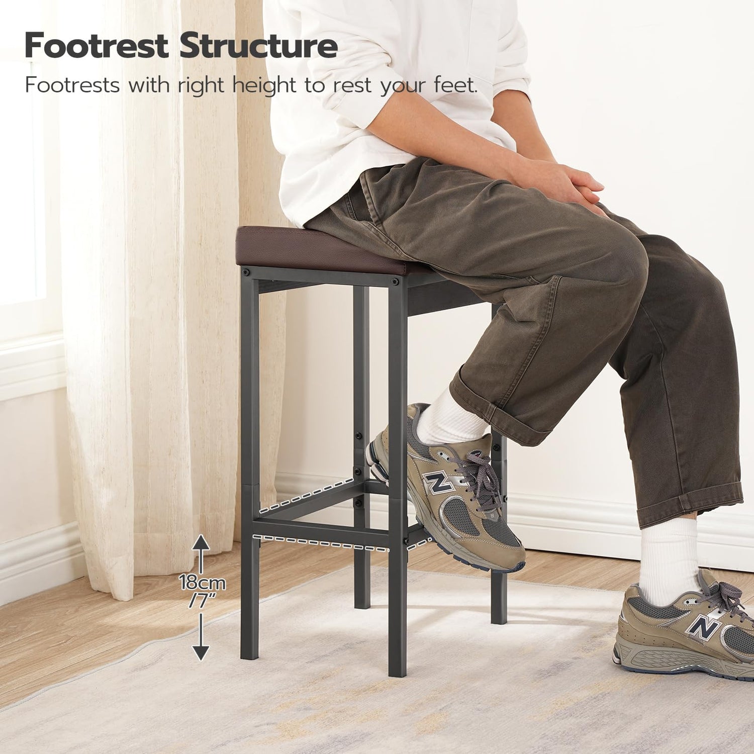 • Robuste Struktur: Der stabile Metallrahmen und die quadratischen Pedale schaffen eine sehr stabile Struktur und machen den Hocker langlebig und nicht verformt, wodurch seine starke Belastbarkeit gewährleistet wird. Jeder Barhocker kann bis zu 120 kg tragen