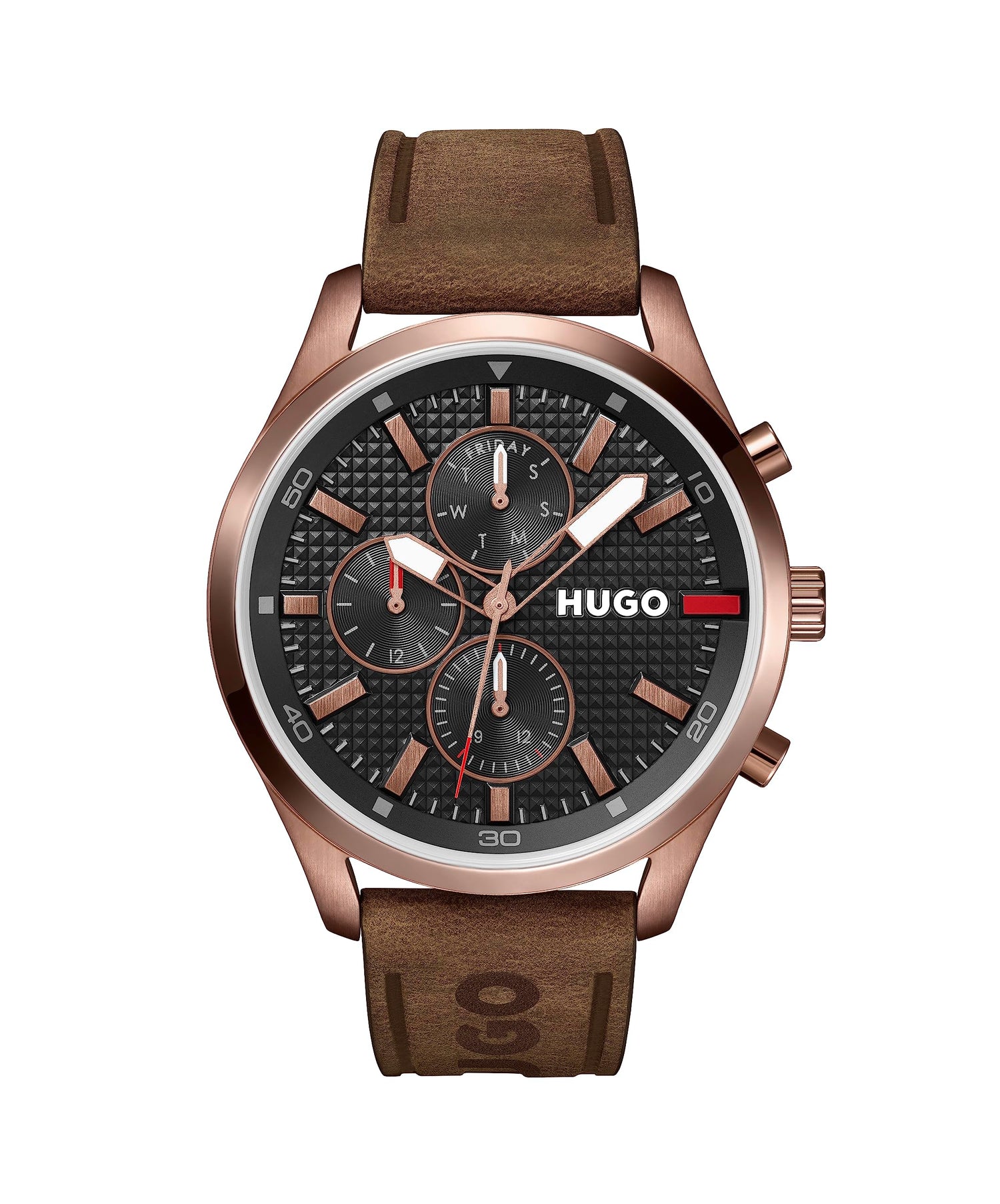 HUGO Multi Zifferblatt Quarz Uhr für Herren mit Braunes Lederarmband - 1530162