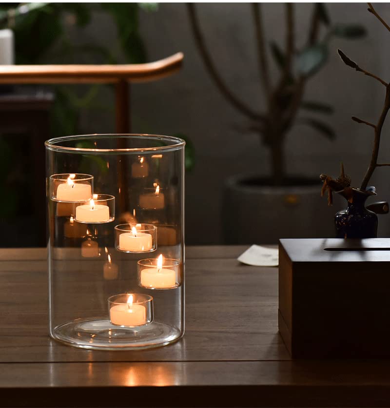 • TOLL FÜR DIY: Sie können diese Hurrikan-Brille mit Ihren kreativen DIY-Fähigkeiten voll ausnutzen, indem Sie Flüssigkeiten, Edelsteine, Rosen blätter, Sukkulenten usw. in die schwimmenden Kerzen vasen für Mittelstücke geben. Der Kerzen ständer besteht aus hohem Boro silikat glas und ist aus makellosem Kristall, wodurch die Verzierung rundum sichtbar ist.