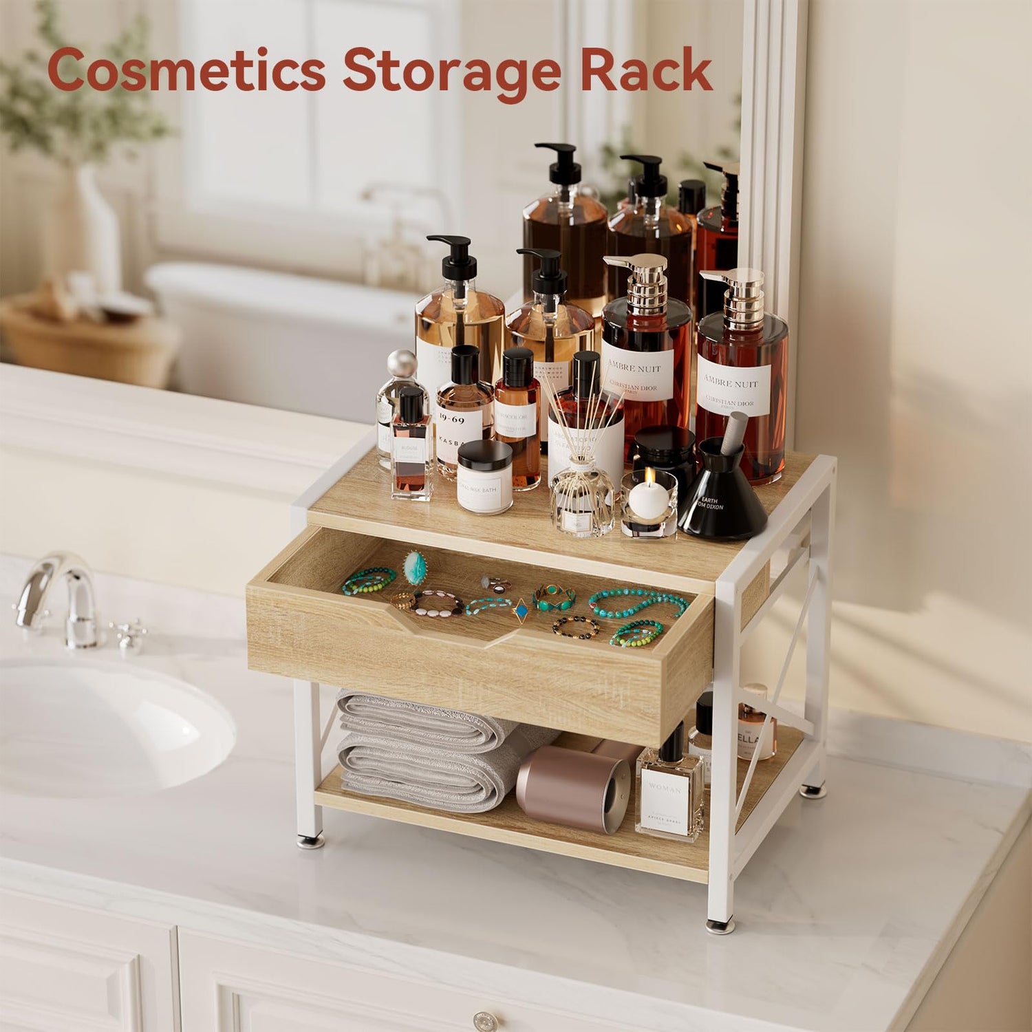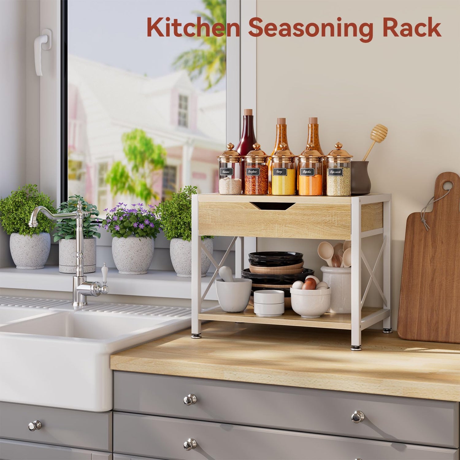 IBUYKE 2 Tier Desktop-Drucker Stand, Mehrzweck-Schreibtisch-Organizer, hölzerne Drucker Stand mit Schublade Lagerung für Ordner, Bücher, für Faxgerät, Scanner, Home Office TLJ012R