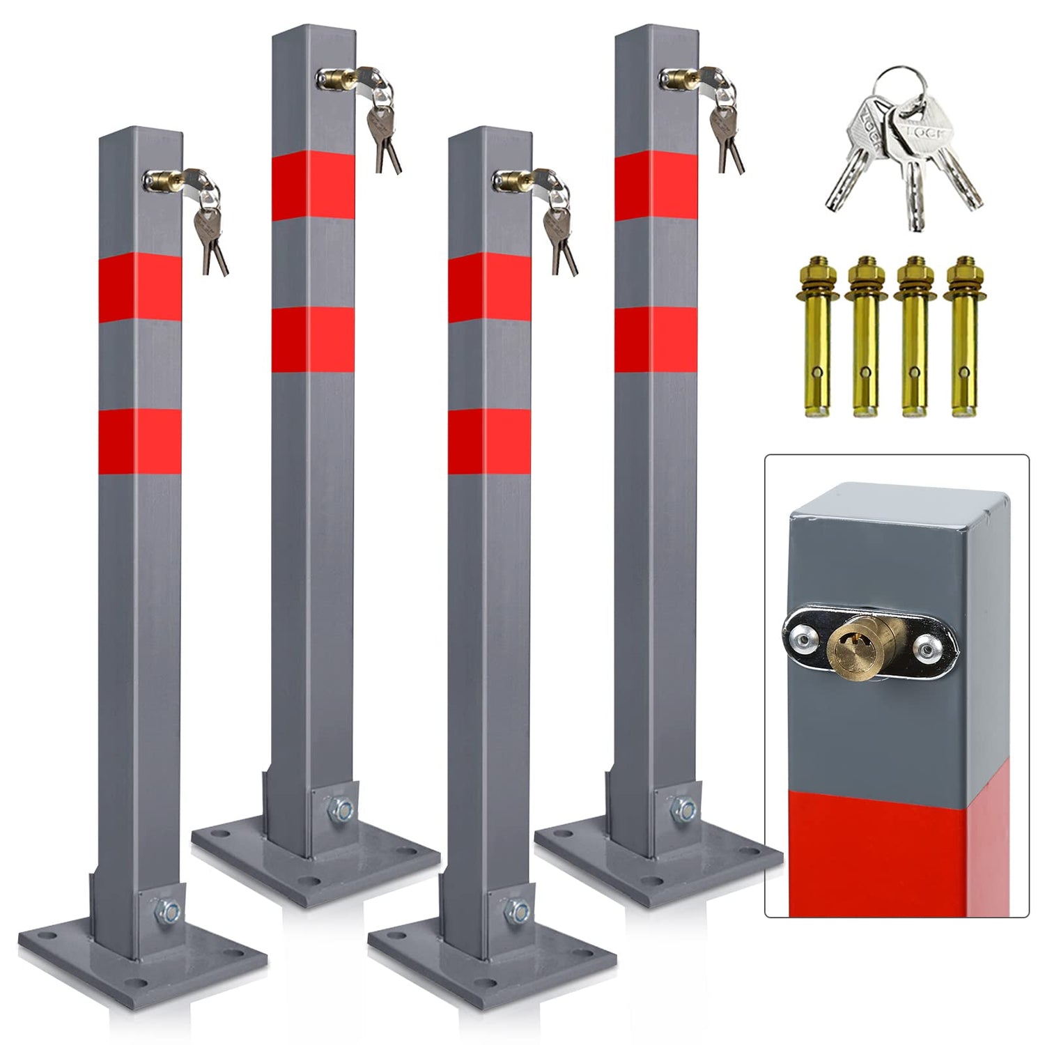 Ikodm 4 Stück Parkplatzsperre Klappbar Parkpfosten Absperrpfosten mit 12 Schlüssel mit Warnstreifen