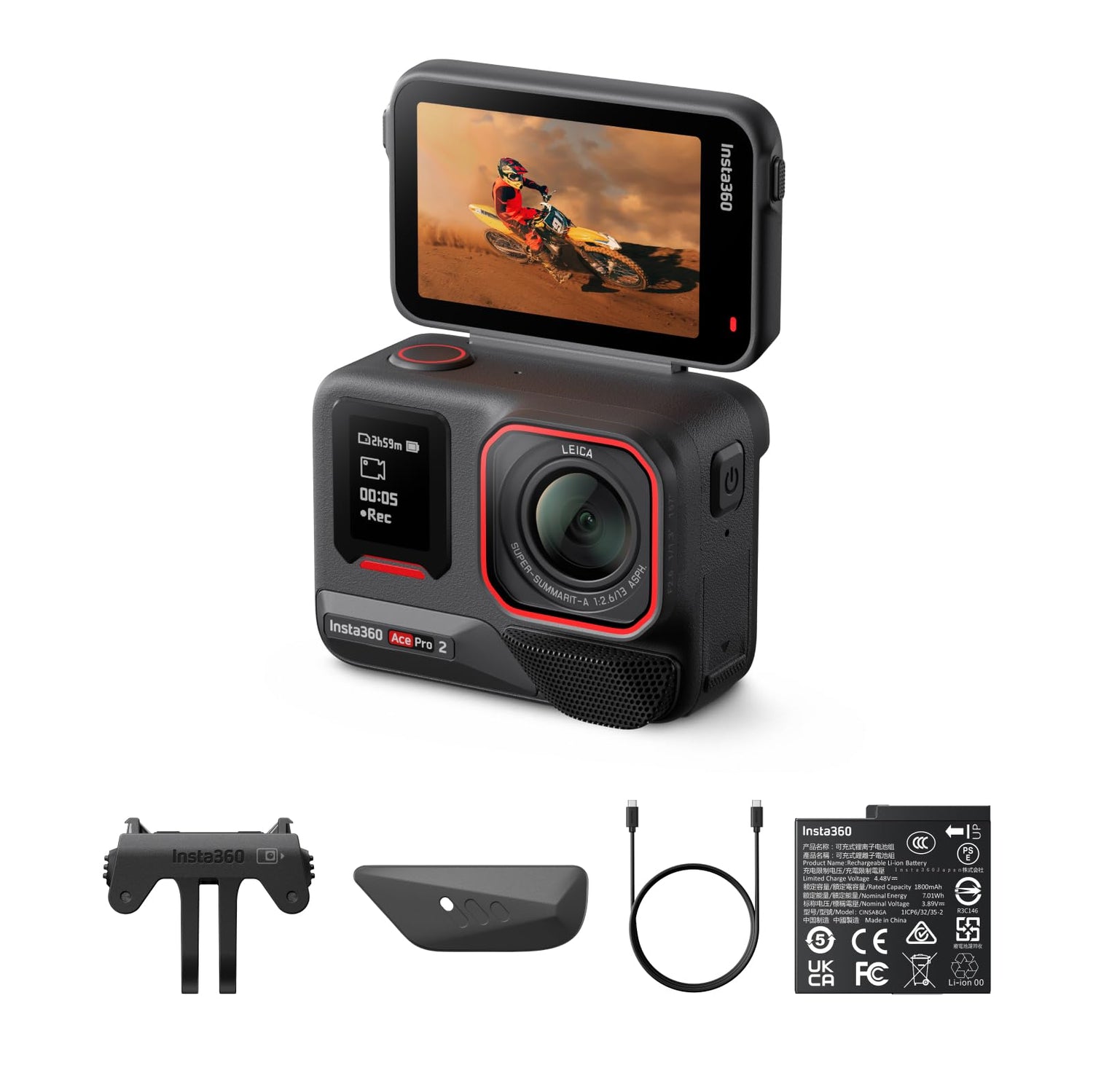 Insta360 Ace Pro 2 Pack Dual Akku – wasserdichte 8K-Action-Kamera mit Leica, 1/1,3 Zoll Sensor, Dual-KI-Chip, niedrige Lichtqualität, fortschrittliches Audio, klappbares Display, KI-Edition, Motorrad