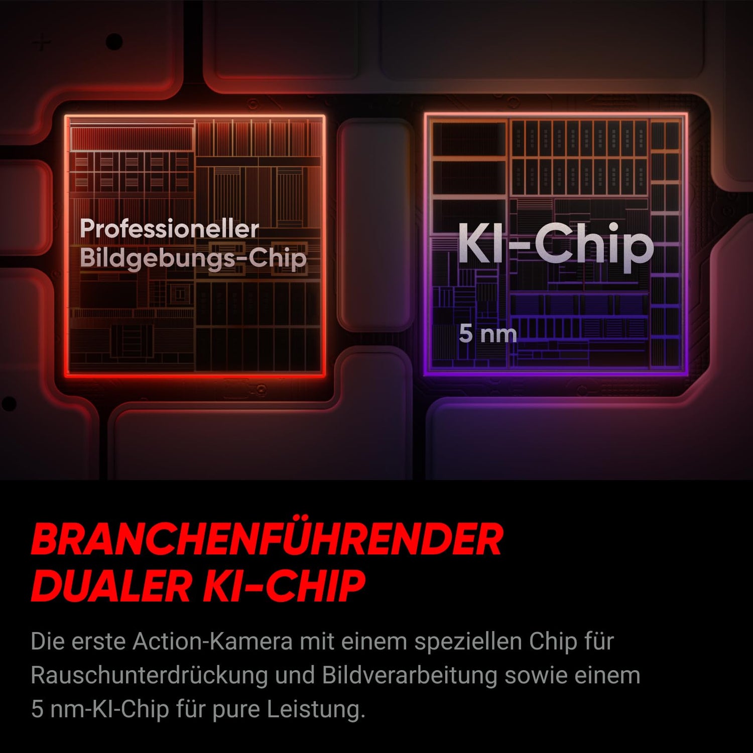 • DOPPELTER KI-CHIP: Die erste Action-Kamera mit einem professionellen Chip für Rauschunterdrückung und Bildverarbeitung und einem 5-nm-KI-Chip für zusätzliche Verarbeitung und leistungsstarke Leistung. Revolutionäre Konfiguration mit unglaublichen Ergebnissen.