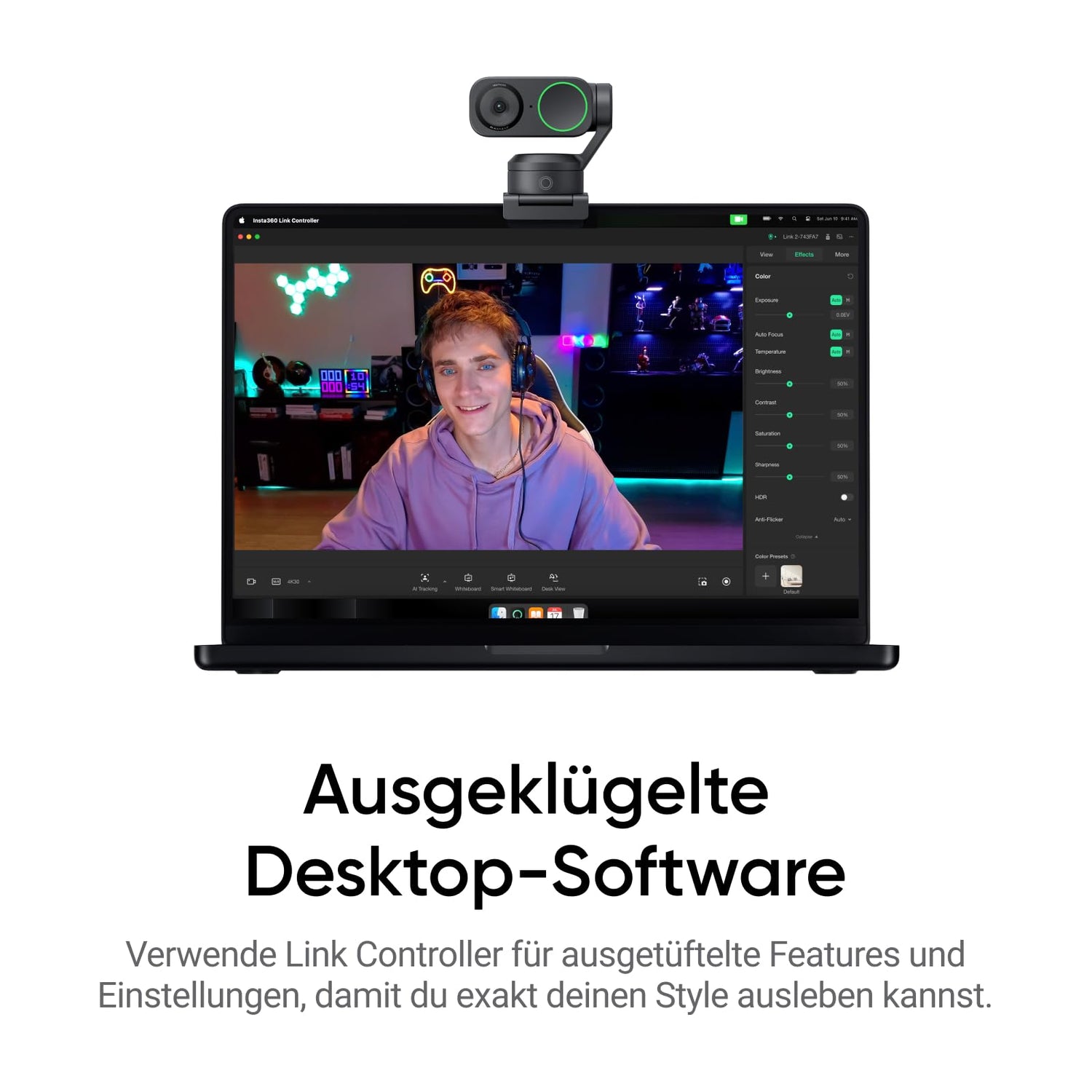 Insta360 Link 2 Standard Bundle - 4K Webcam für PC/Mac, 1/2" Sensor, KI-Tracking, HDR, Mikrofon mit KI-Geräuschunterdrückung, Gestenkontrolle für Streaming, Videoanrufe, Gaming, kompatibel mit Zoom