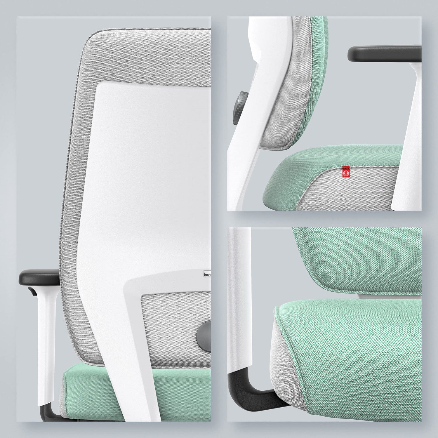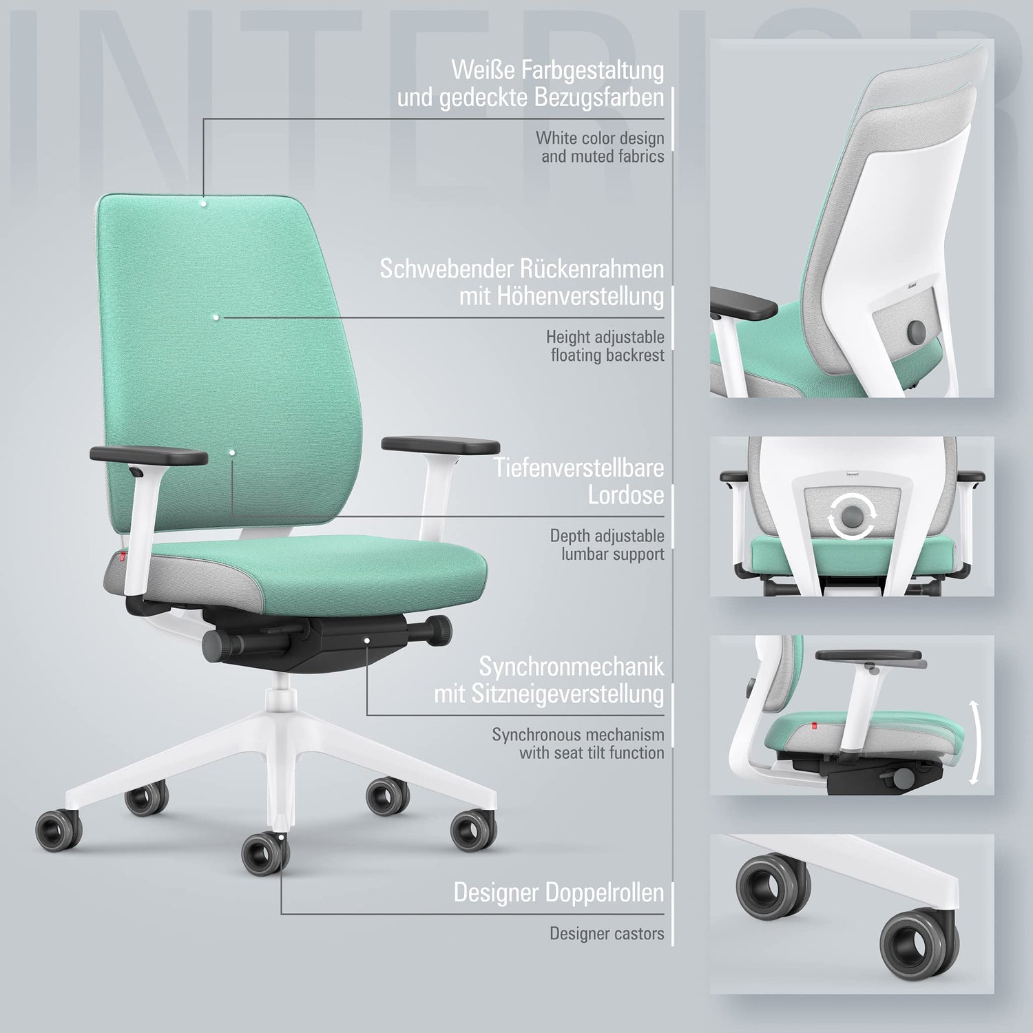 Interstuhl Joyce Interior Edition - ergonomischer Bürostuhl - Schreibtischstuhl mit Synchromechanik - verstellbare Rückenlehne und Lordose - Designer-Rollen (Türkis | Weiß)